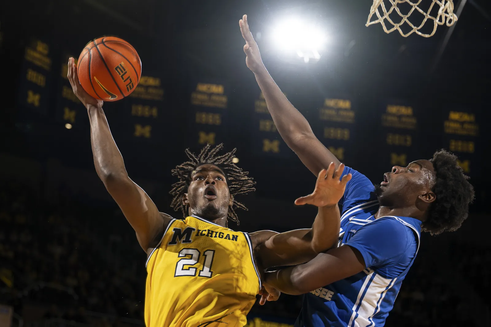 Michigan guard Nimari Burnett drives to the basket against Middle Tennessee State