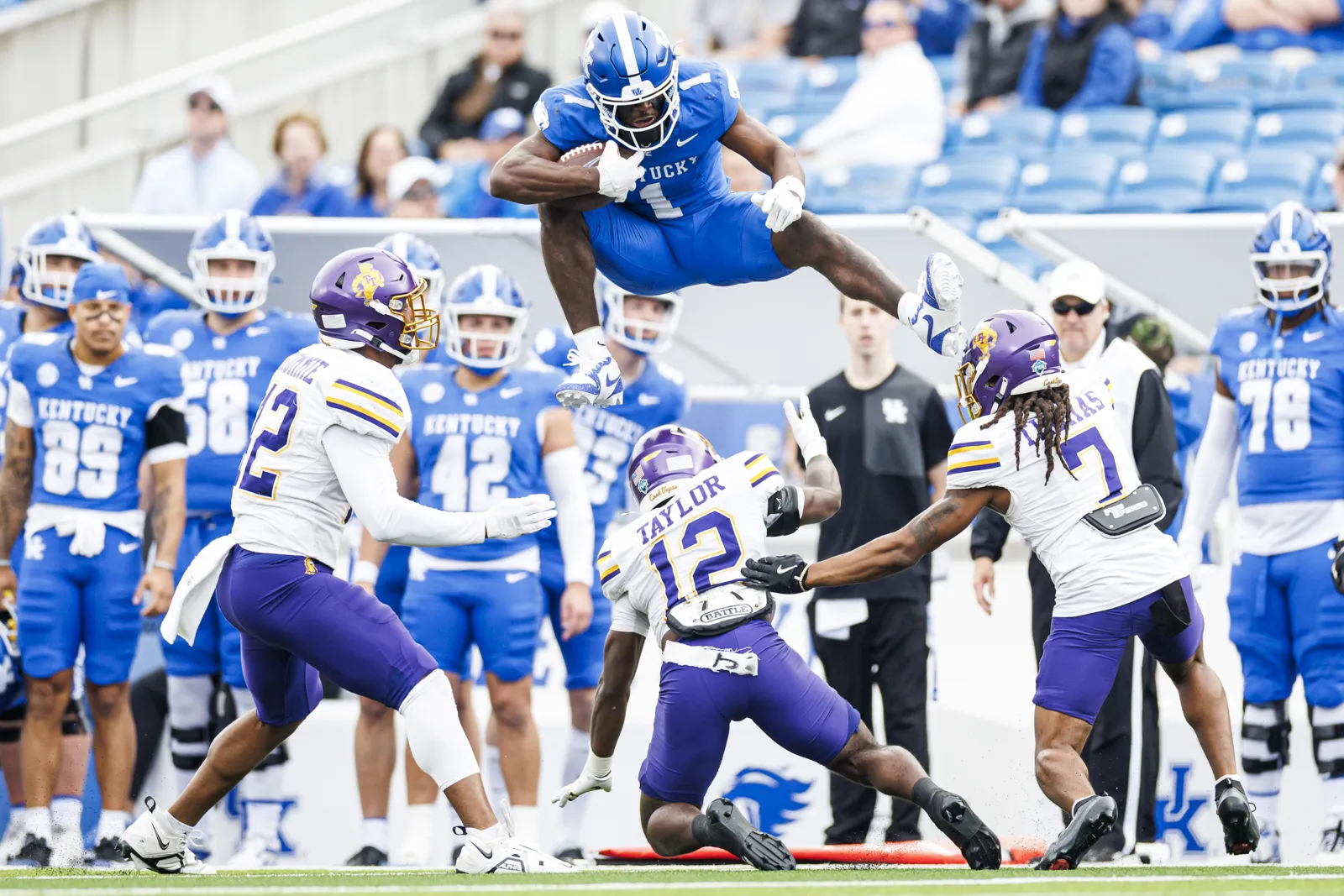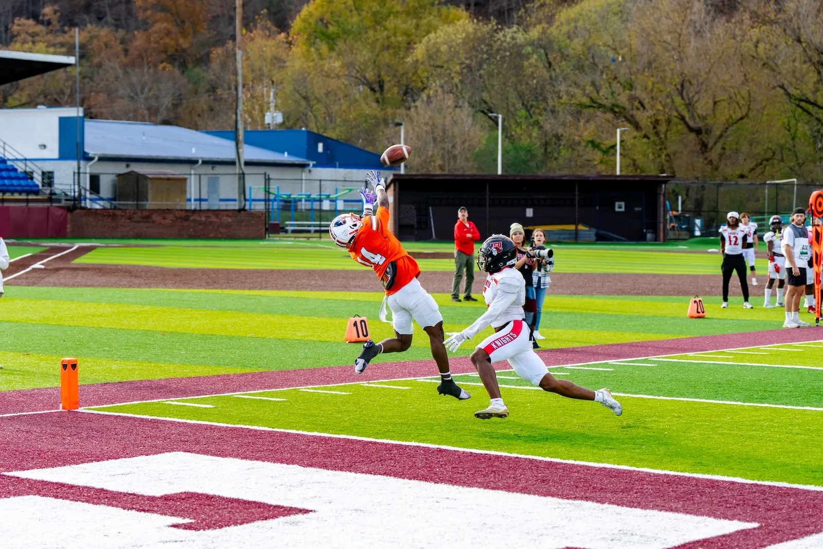 UPIKE football player flies to catch the ball on the goal line in a blow out Senior Day win.