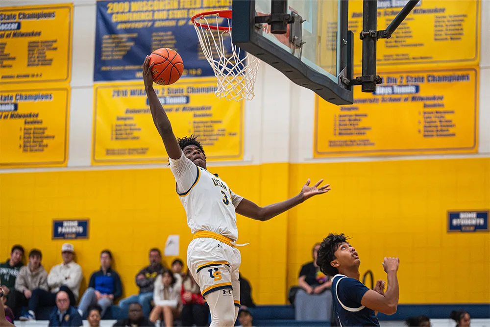 University School of Milwaukee Men's basketball team won their first game of the year, 74-55 over Salam High School.
