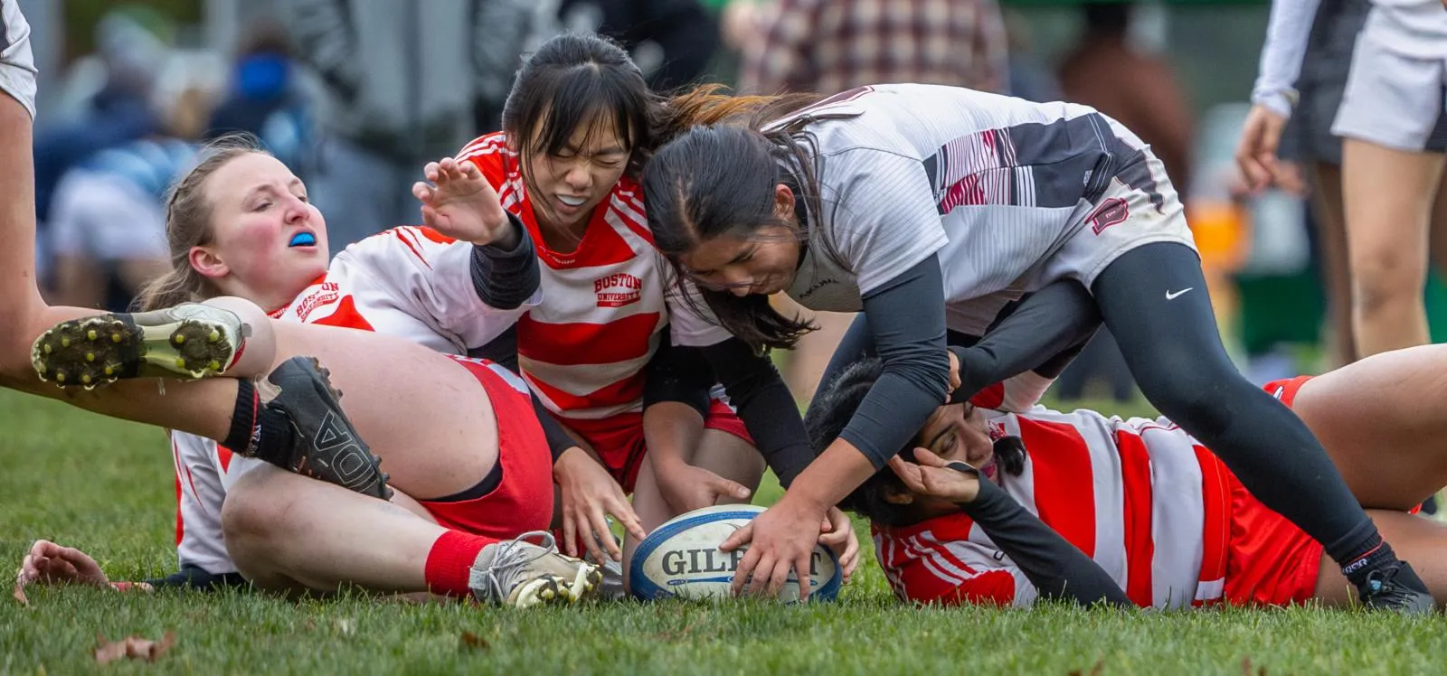 Lauren Huang of the Brown Women's Rugby team fights to recover a loose ball during the Cianci 7s Tournament.