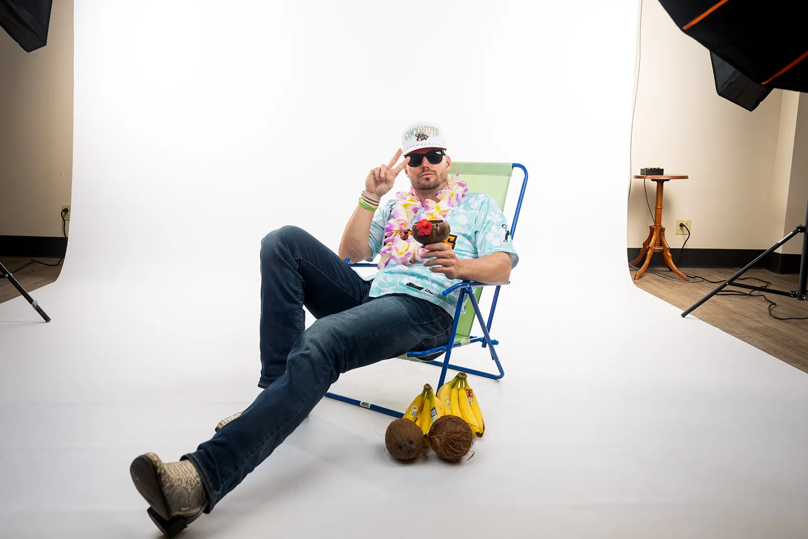 Tanner Allen, former MSU baseball star, recently joined the Loco Beach Coconuts Banana Ball team. He was the first MSU player to be recruited to play Banana Ball. Some photos from this studio session will be used in MSU's Alumnus magazine.