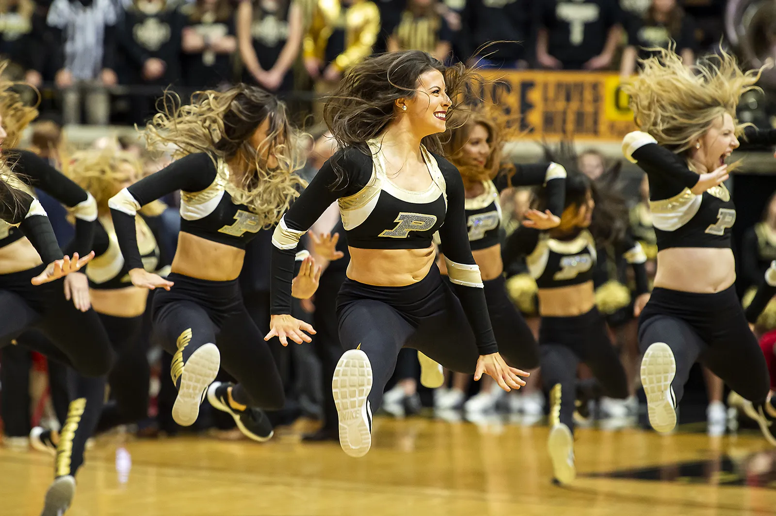 The dance team performs at halftime of the Purdue/Indiana rivalry game.