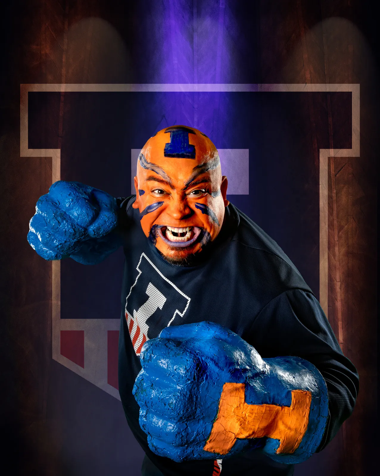 Ceasar Perez is best known to many as “Mr. Blue Hands,” the ultimate basketball fan in the stands. By day, Ceasar also excels, running the Toys for Tots program for the past 15 years, as well as formerly serving as a Marine in Somalia.
