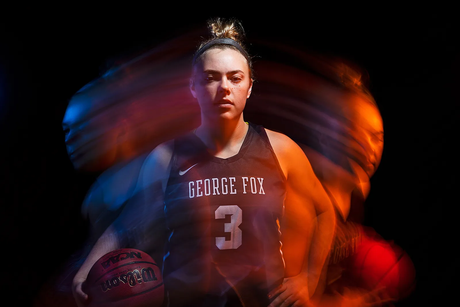 As part of our mission to treat our D3 teams like D1 teams, we got technical and tricky with our Women's Basketball Hype photos. Using motion and a long shutter we achieved the feeling of action and speed in our photos.