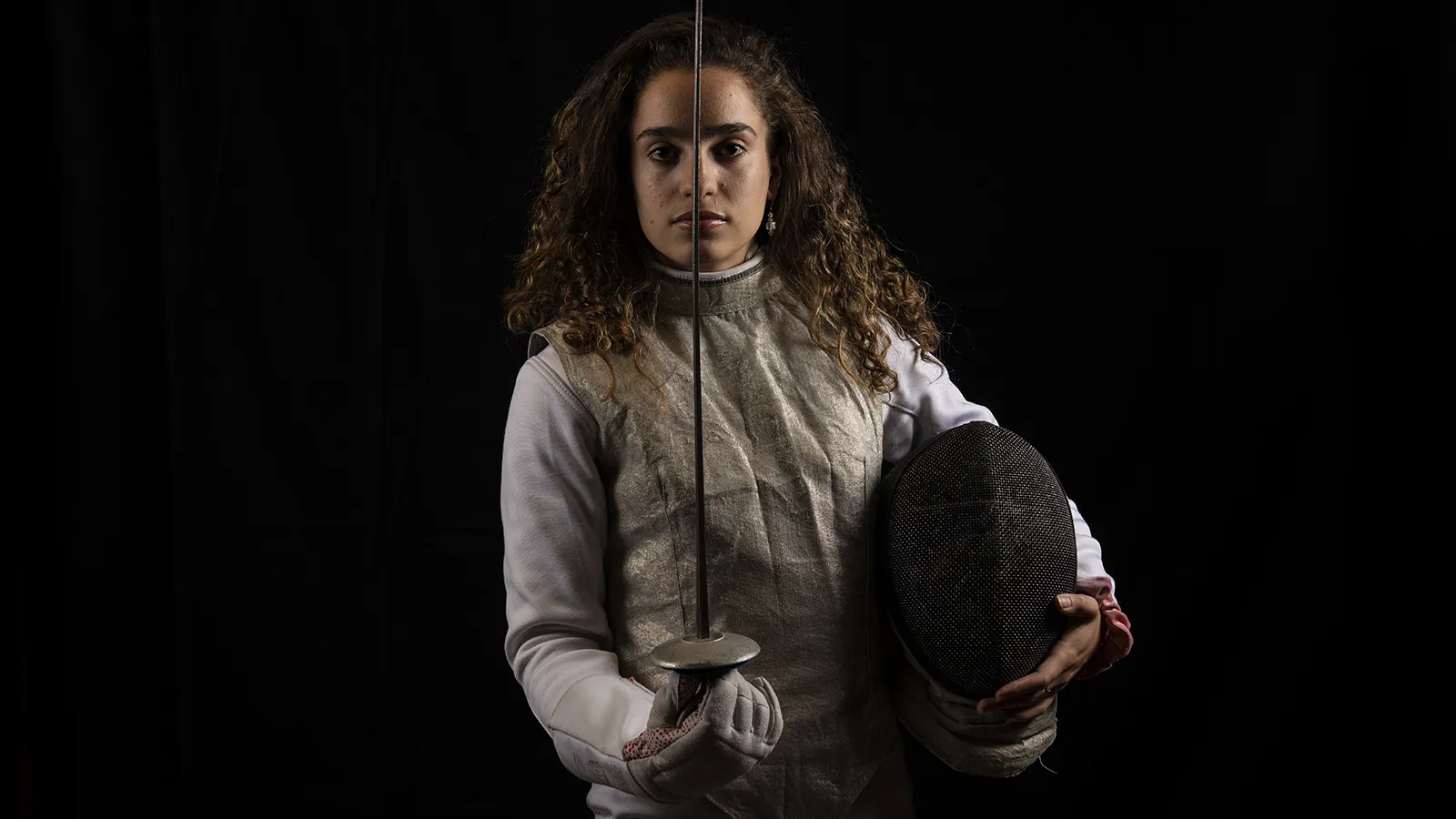 Cornell Big Red epee fencer Gabrielle Hill poses for feature photos on Nov. 28, 2019 in the Stifel Fencing Salle in Ithaca, NY.