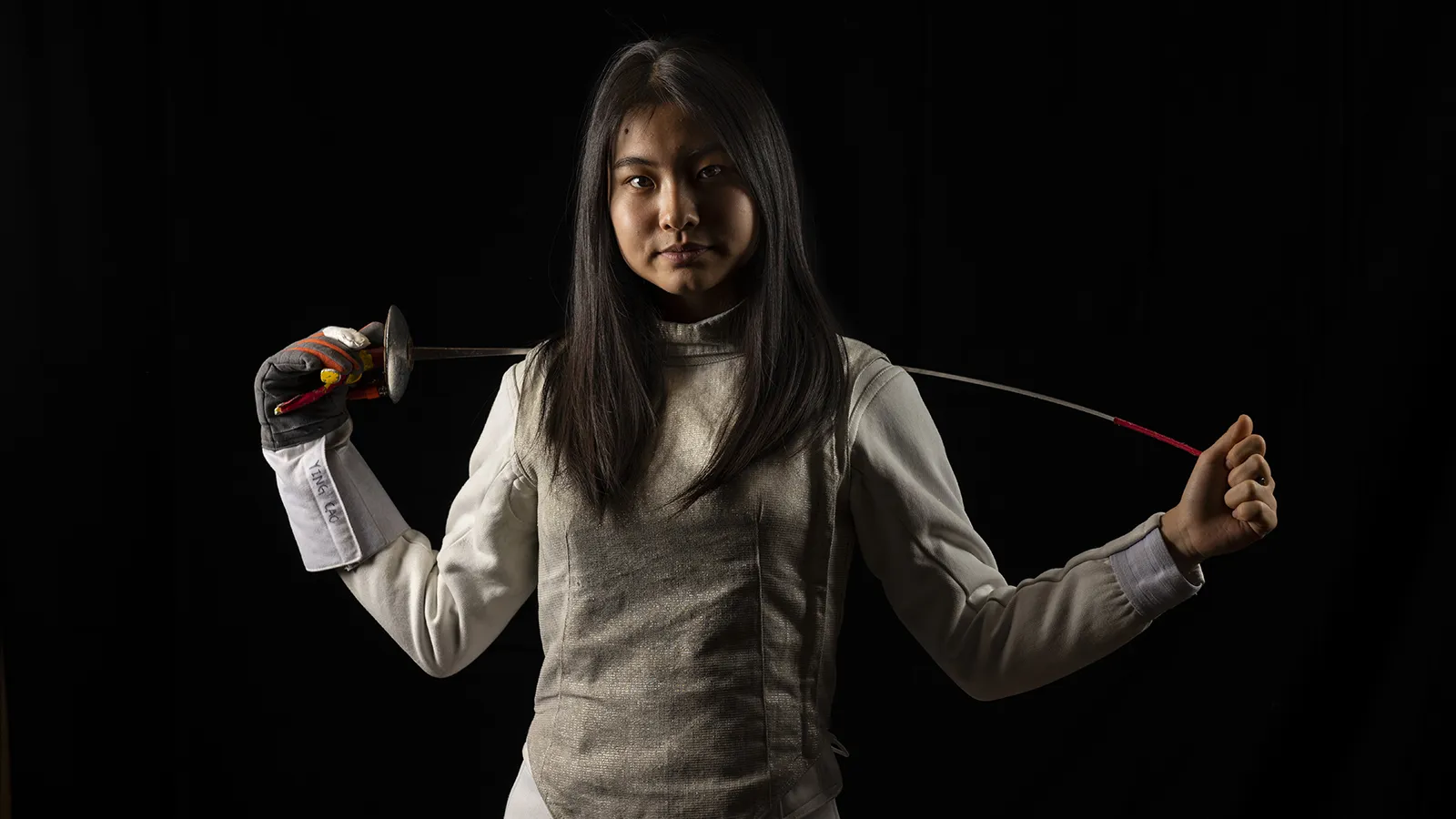 Cornell Big Red foil fencer Ying Cao poses for feature photos on Nov. 28, 2019 in the Stifel Fencing Salle in Ithaca, NY.