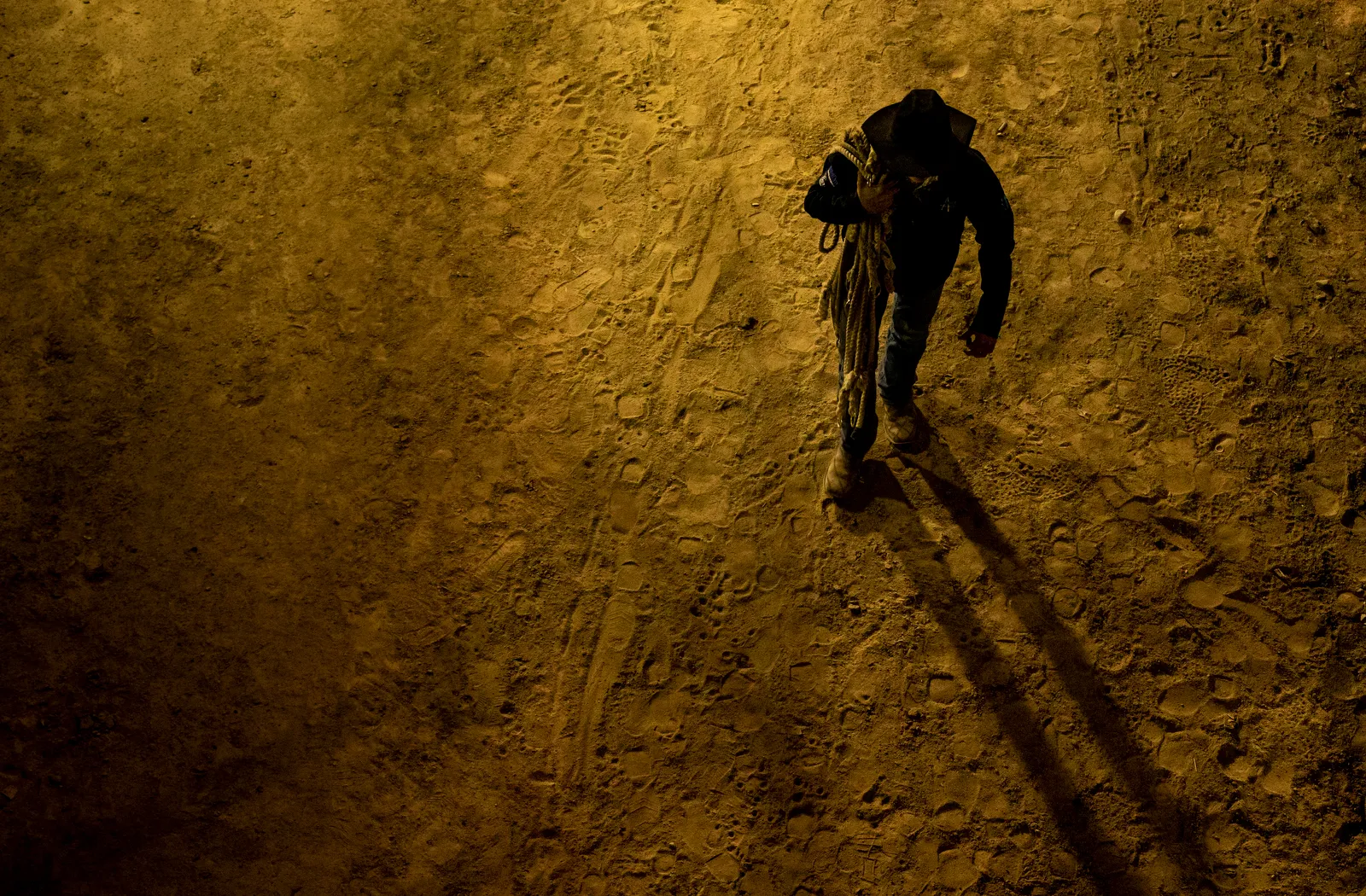 A cowboy walks out of the Arena after the UVU Spanish Fork Rodeo