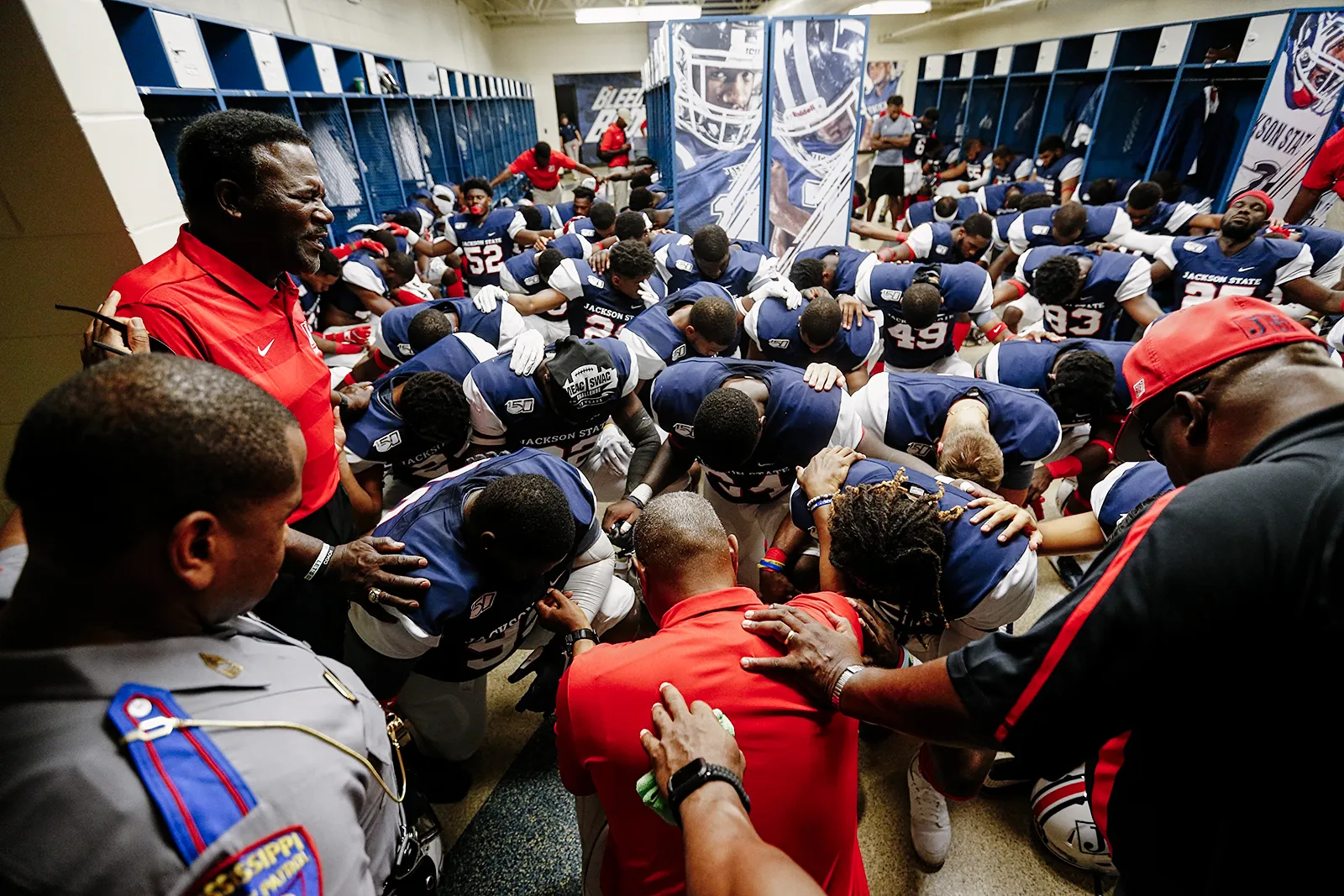 Like most athletic programs around the country the JSU Tigers say a little prayer before taking the field against the Grambling State.
