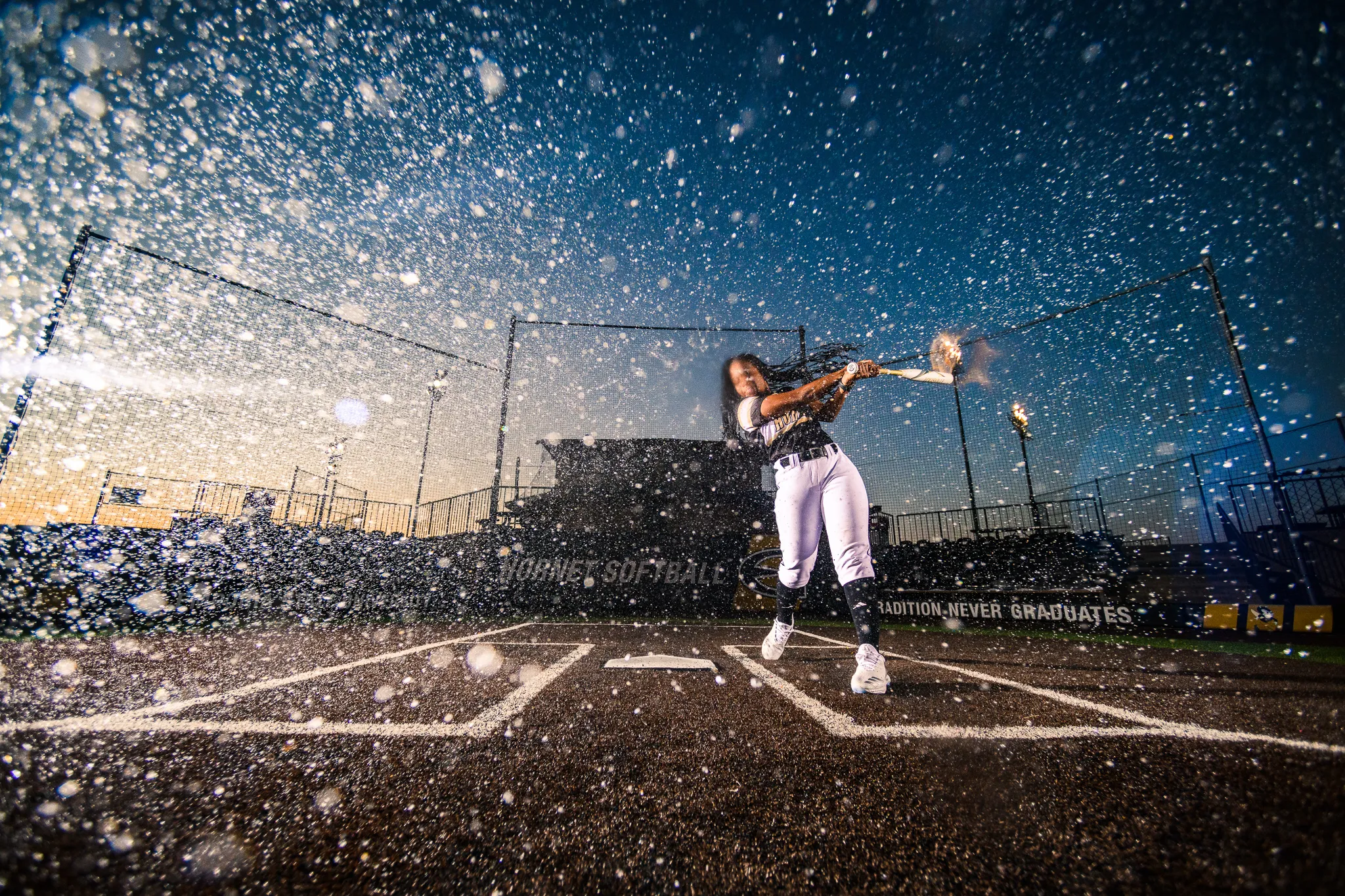 Our softball team insisted that we hit water balloons again this year during their photoshoot, so we had a blast trying some different angles. The spray from this one was so good on her first hit that I knew it would be the best shot from the shoot right away.
