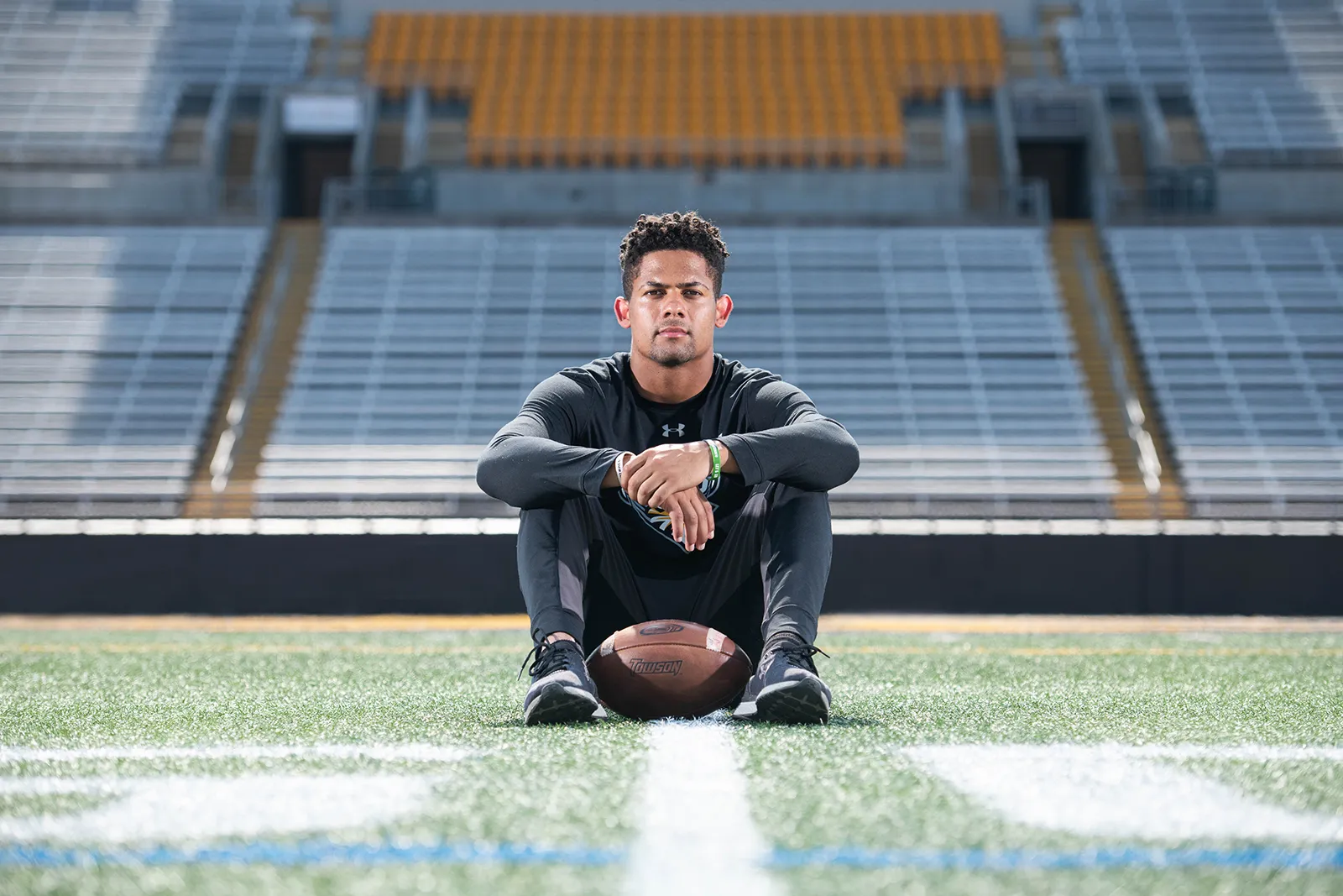 Shane Leatherbury sits at the 50 yard line at Johnny Unitas Stadium at Towson University