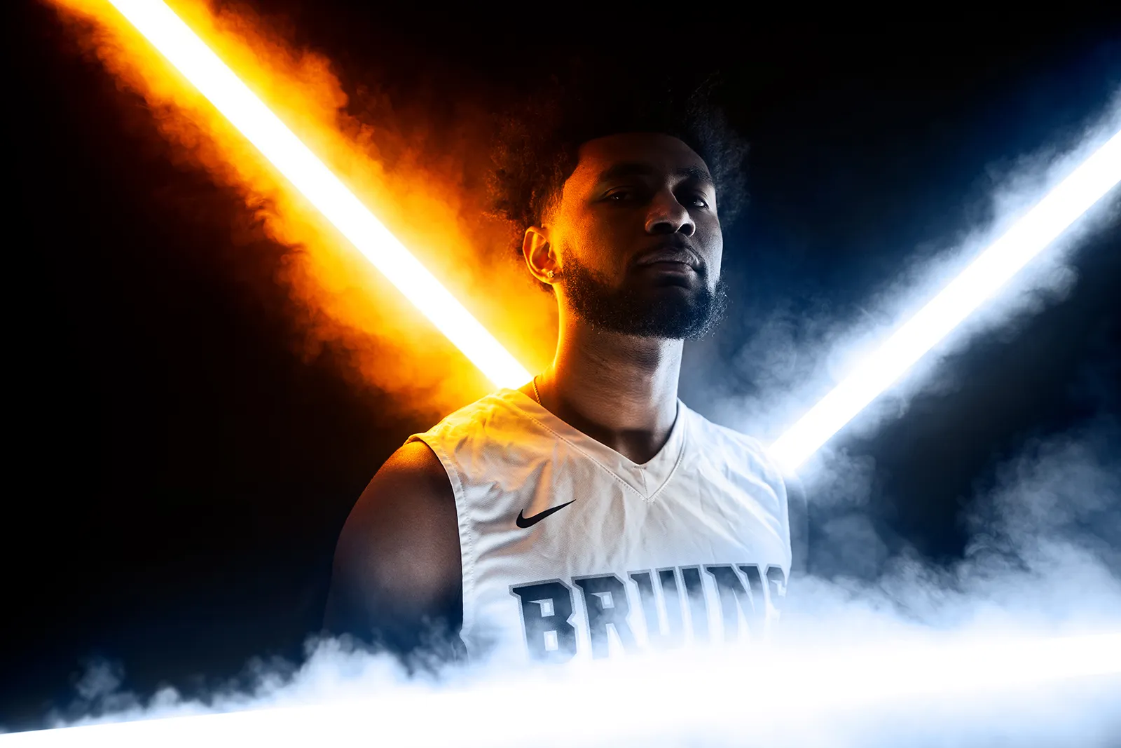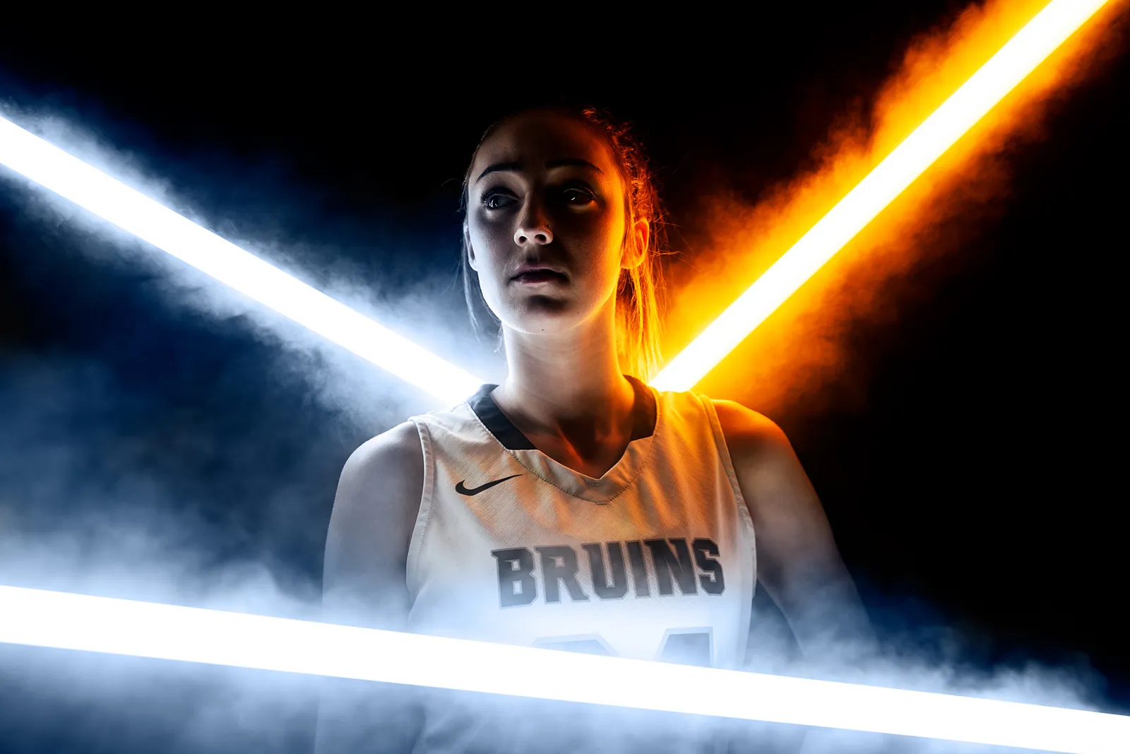 We made this ad for our local NBA team's yearbook. It will run as a full page ad with minimal graphic treatment. It is one shot, no compositing. This ad elevates our university with our local audience as a legit university with legit athletics.