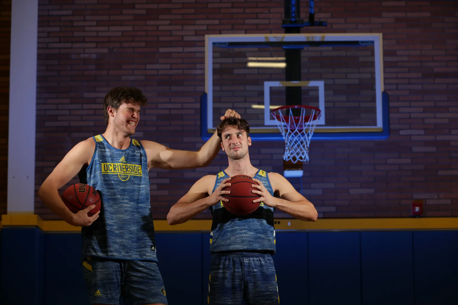 Members of the UC Riverside basketball team , Callum McRae, left, and Dragan Elkaz on June 26, 2019. Callum and Dragan become fast friends after coming to UCR from New Zealand and Australia, and their friendship helped each of them cope with adjusting to a new country.