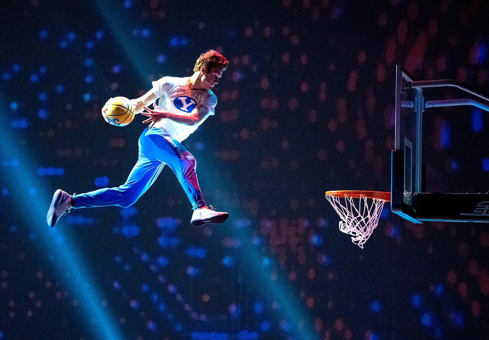 Members of the Cheerleading Dunk Team perform for an audience in Xi'an, China during their international tour.