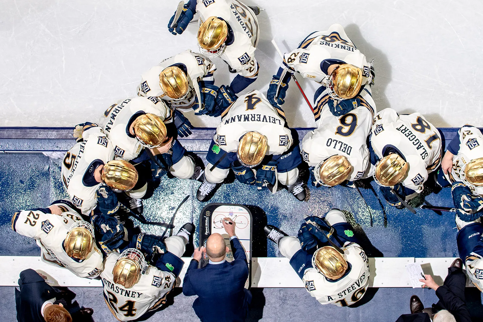 Dec. 1, 2018; Associate head coach Paul Pooley draws up a play in the third period against RPI.
