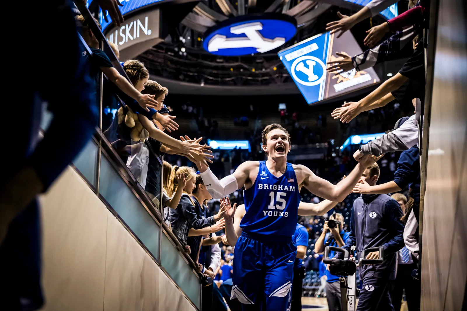 Payton Dastrup celebrating with fans after a big win at home after the in state rivalry game.