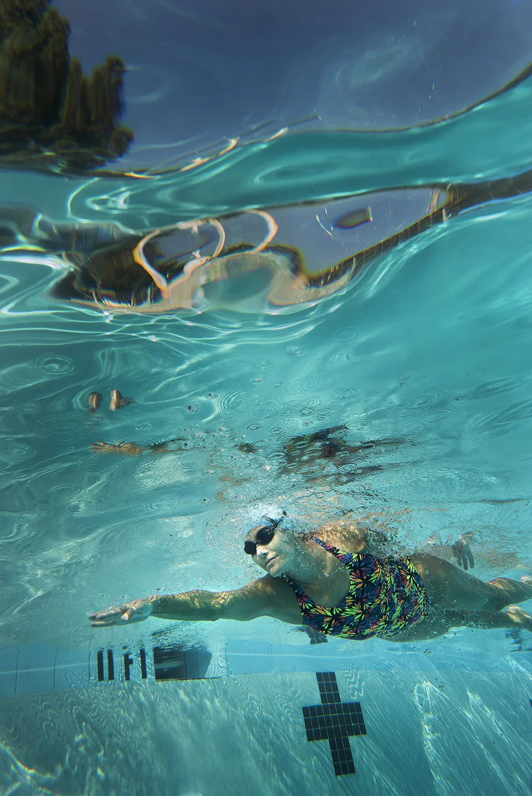 Graduate School of Management professor Kim Elsbach photographed at the Civic Center Pool in Davis for a story about faculty hobbies for UC Davis Magazine. Elsacb is a U.S. Masters Swimmer.