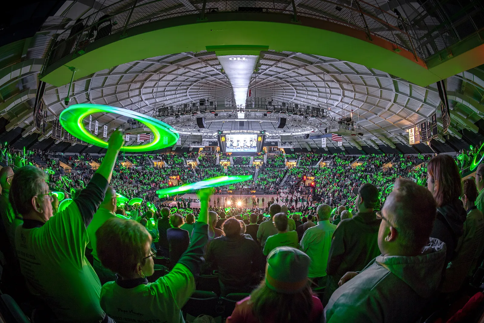 Fans wave glow sticks during player introductions before the Women's Basketball game against Tennessee at the Purcell Pavilion.