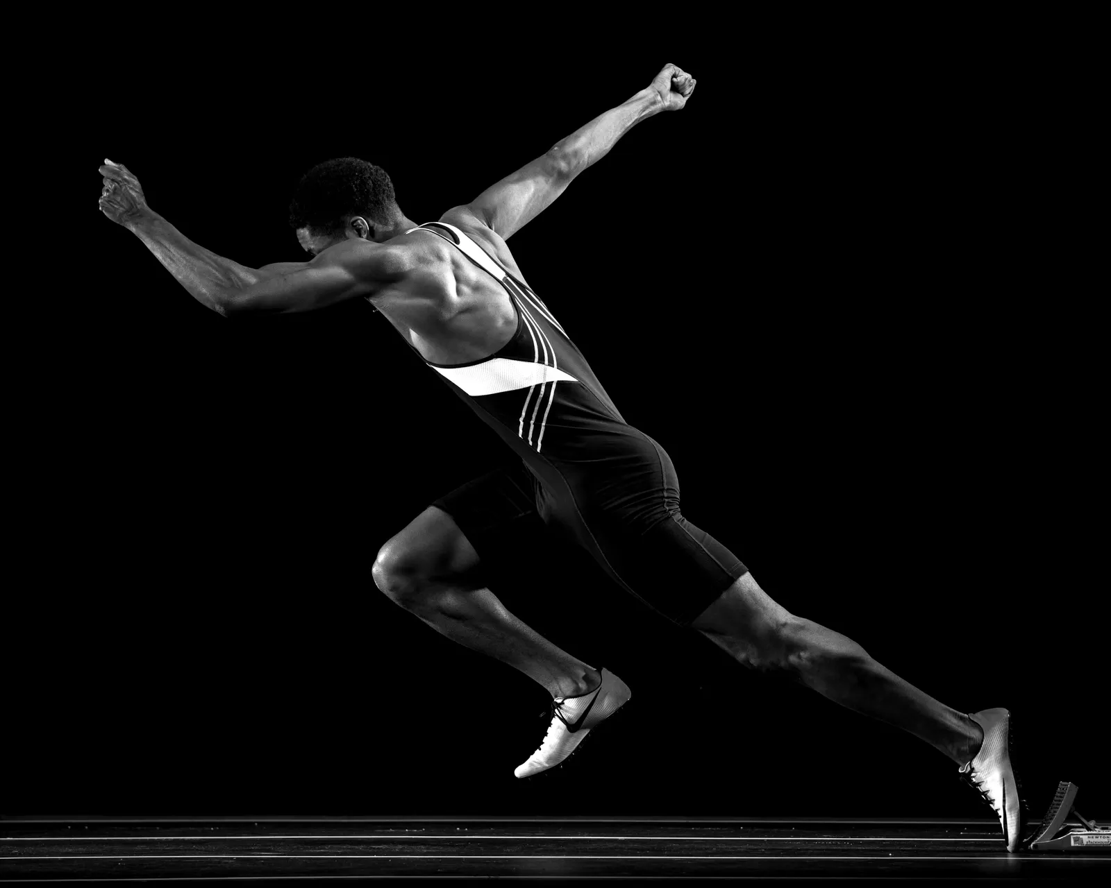 C.J. Lindsay Jr. explodes out of the blocks during a track promotional shoot on Jan. 5, 2017.