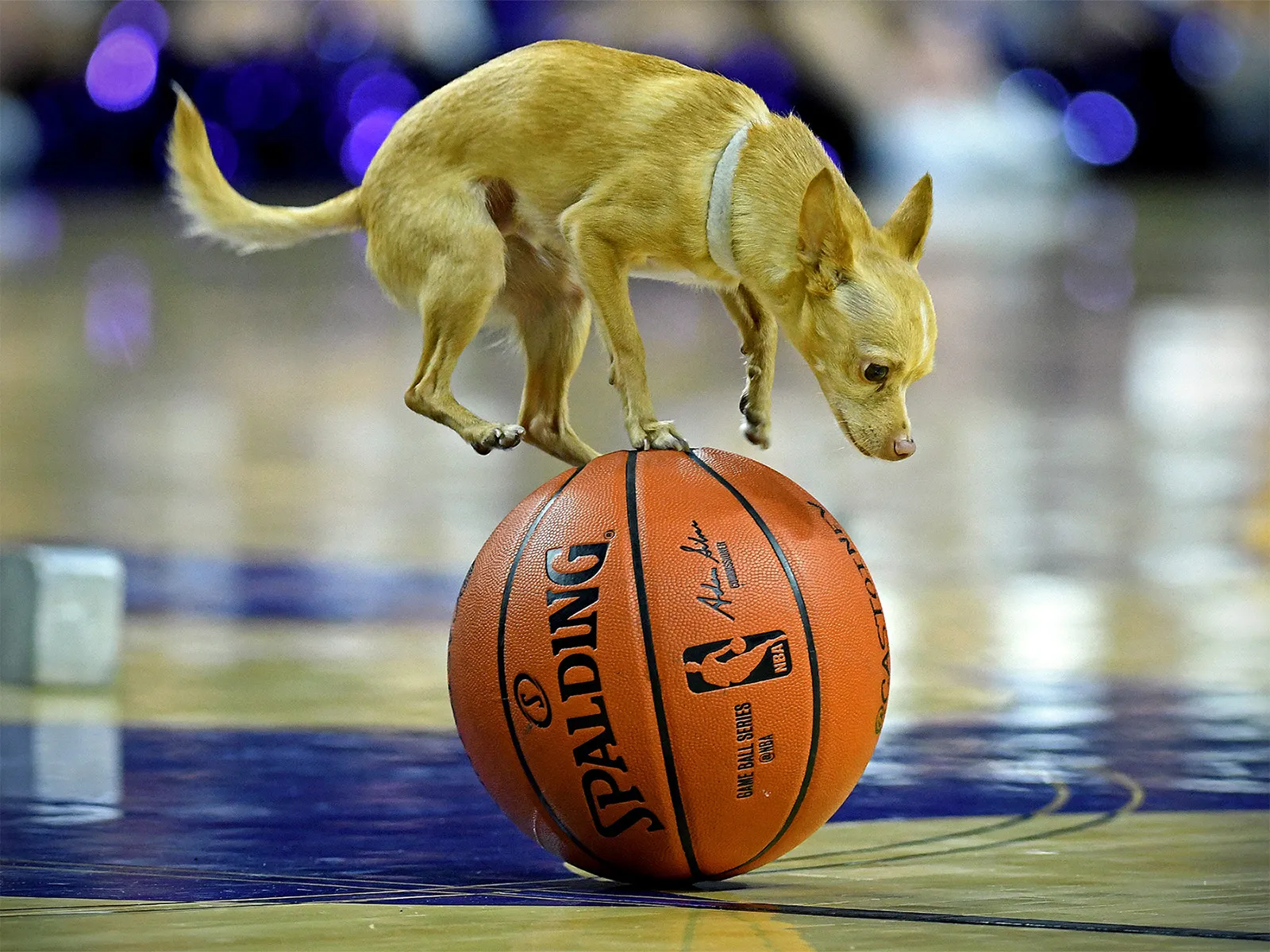 Scooby, a chihuahua, performs during halftime of the K-State women’s basketball game against Iowa State at Bramlage Coliseum in Manhattan, Kansas on February 3, 2018.