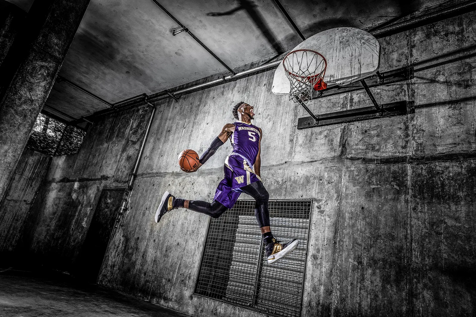 Freshman Jaylen Nowell goes in for a dunk on the underground hoops on campus!
