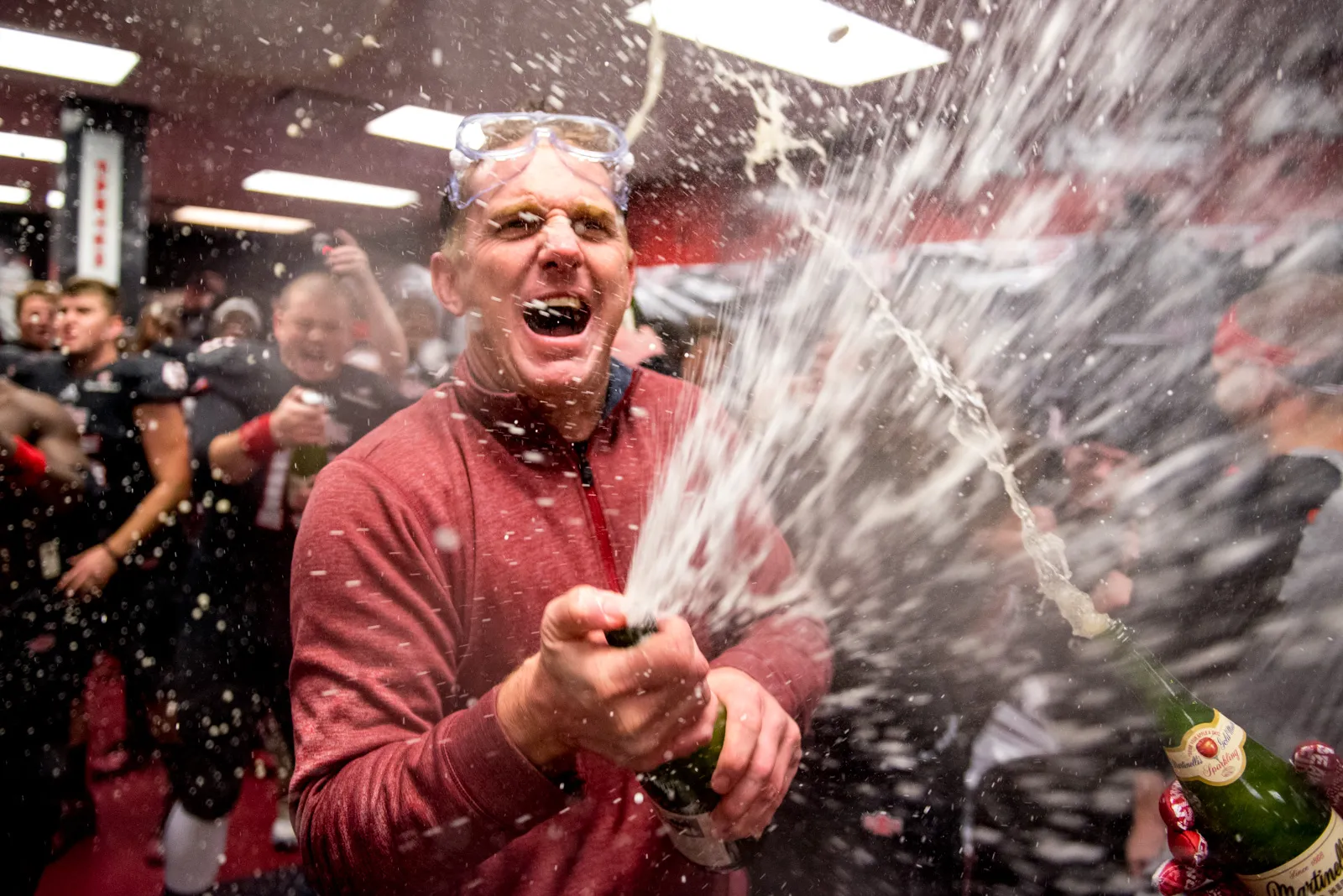 Head coach Blake Anderson celebrates after winning the Sun Belt Championship.