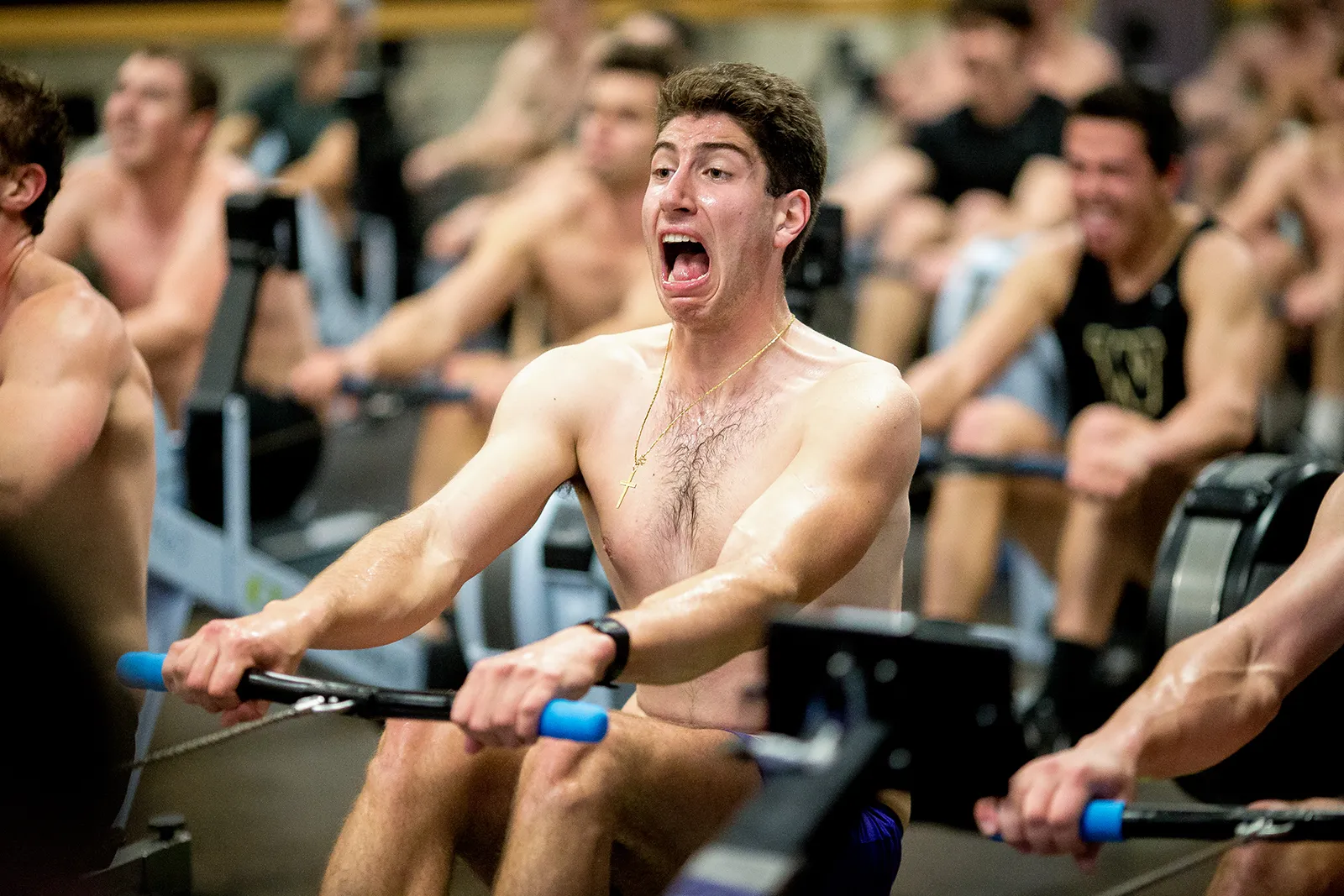 Not sure if it is fear or agony on the face of rower Luke Khoury as the team hits the midpoint of their most challenging practice of the week as the intensity is about to increase!