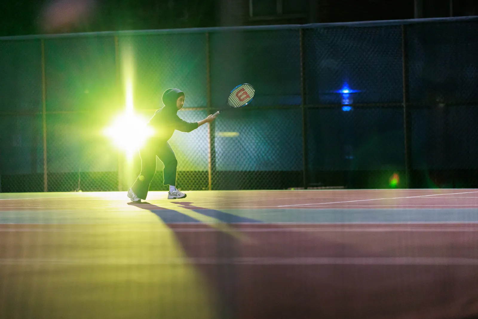 Tennis Club practice on Thursday, October 23, 2025. I placed a gelled light behind the athlete while they practiced.