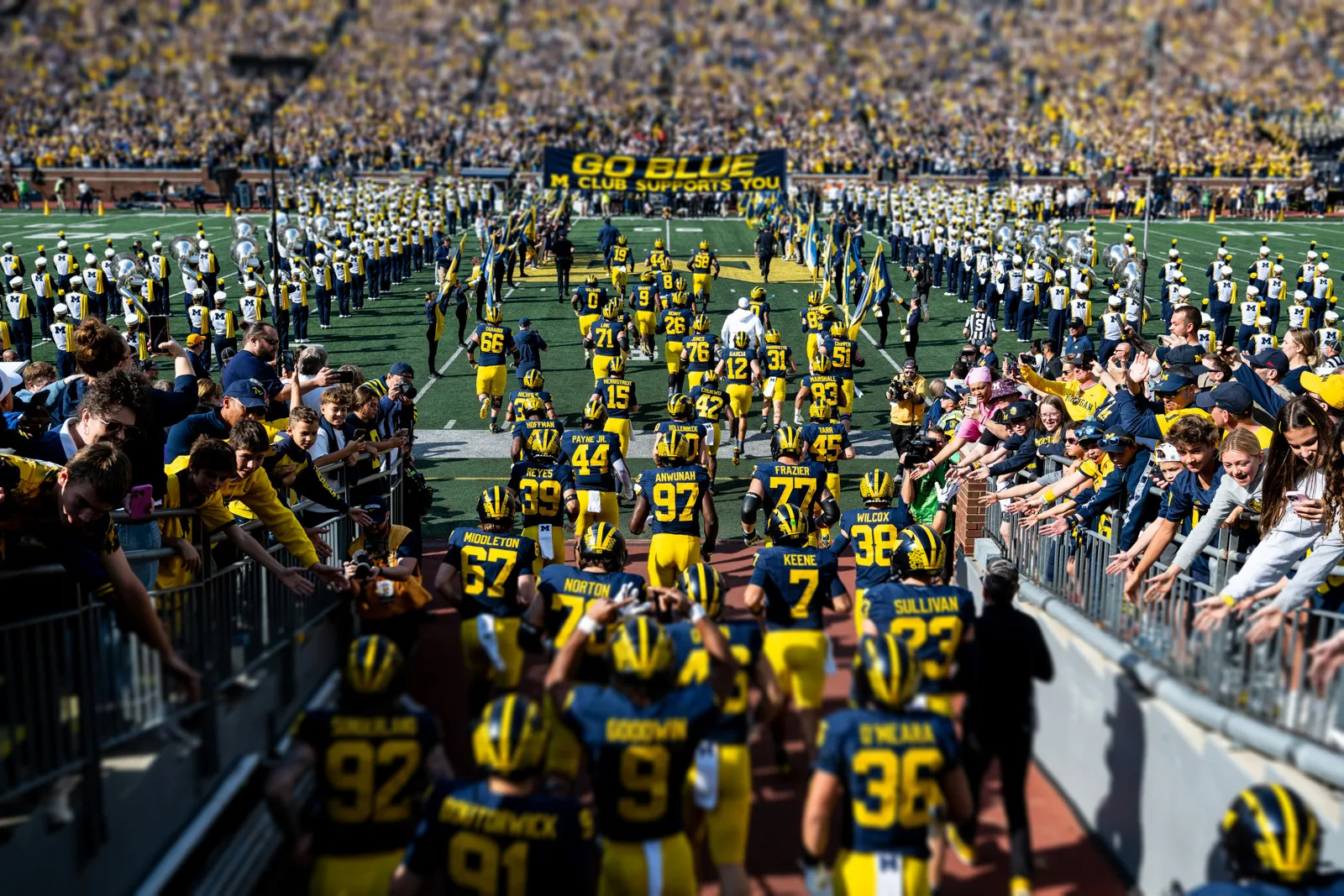 1/50 Sec. exposure from top of the stadium after touchdown with sunset. Composited shot of fireworks over better shot of fans not holding up beers. (hence the illustration category).
