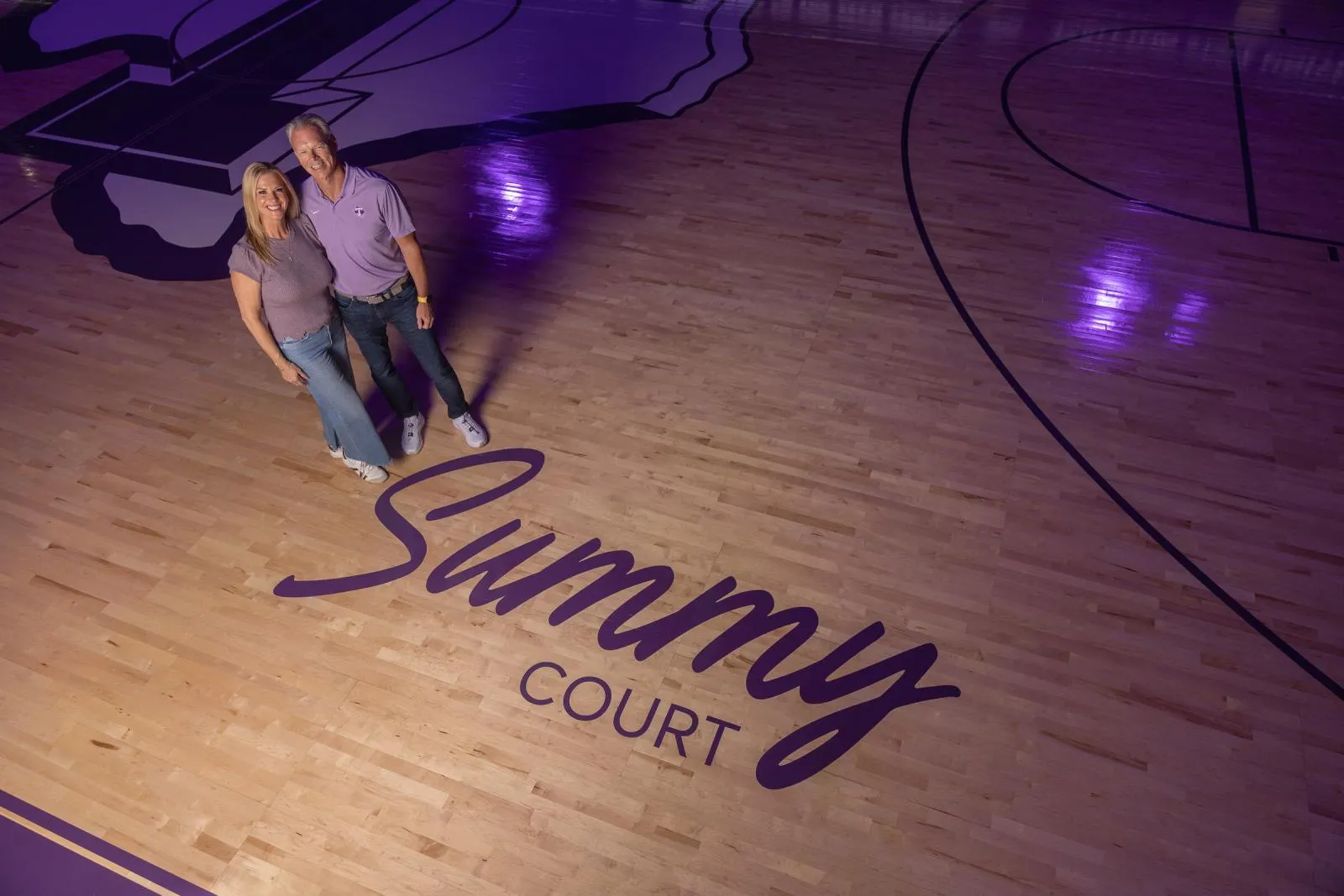 This photo was taken for a magazine photo spread to recognize Scott and Lenna Summy who have been supporters of Tarleton State Basketball and now have their name on the court in our new Basketball arena.