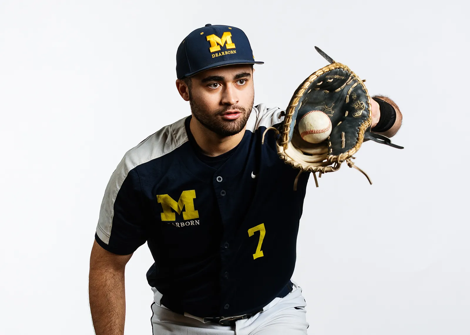 University of Michigan-Dearborn junior infielder Roberto Torres participates in Baseball Media Day on Friday, Jan. 16, 2026.