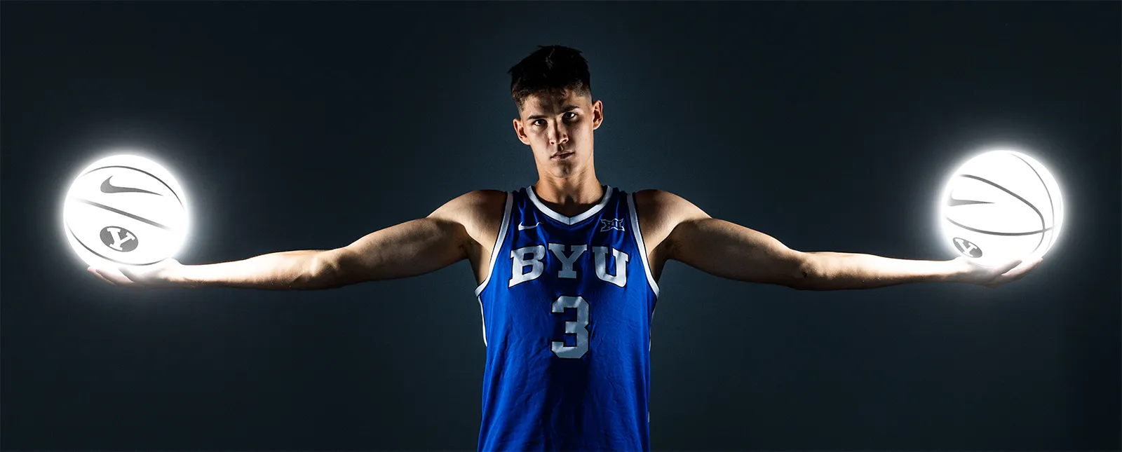 Egor Demin BYU Basketball Glow Ball Sports Marketing. Added lines to ball in post. Added glow to ball.