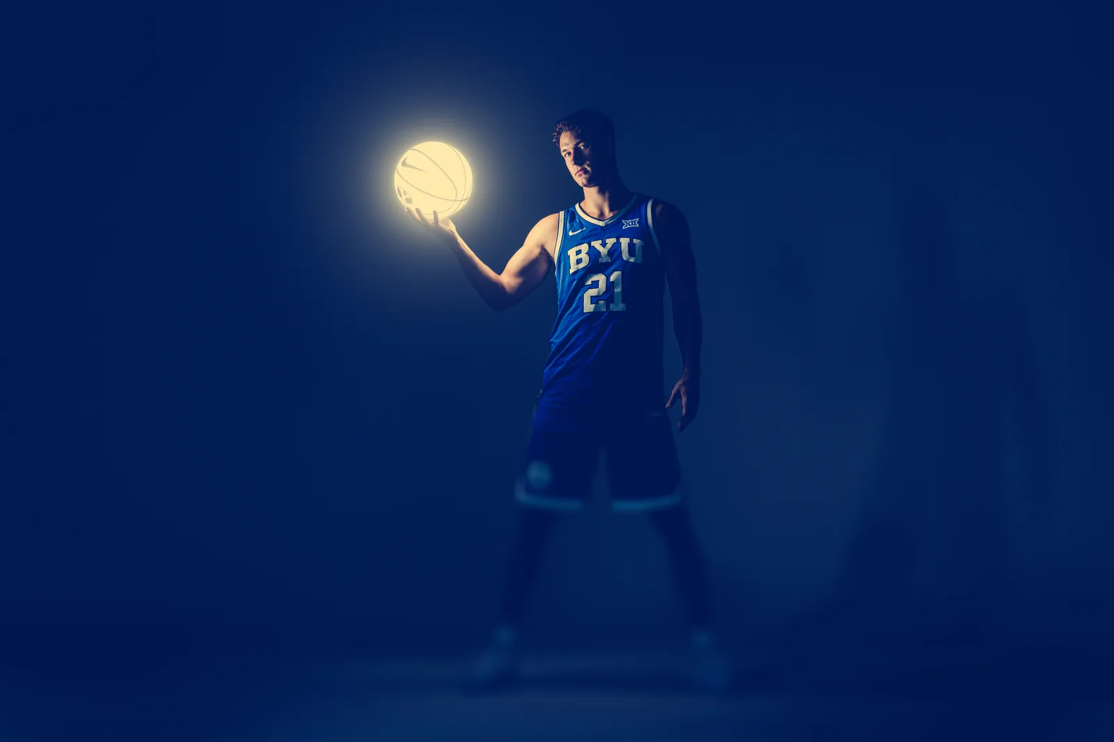 Men's Basketball Promo Shoot with glowing basketball. The lines/logos on the ball were added in post.