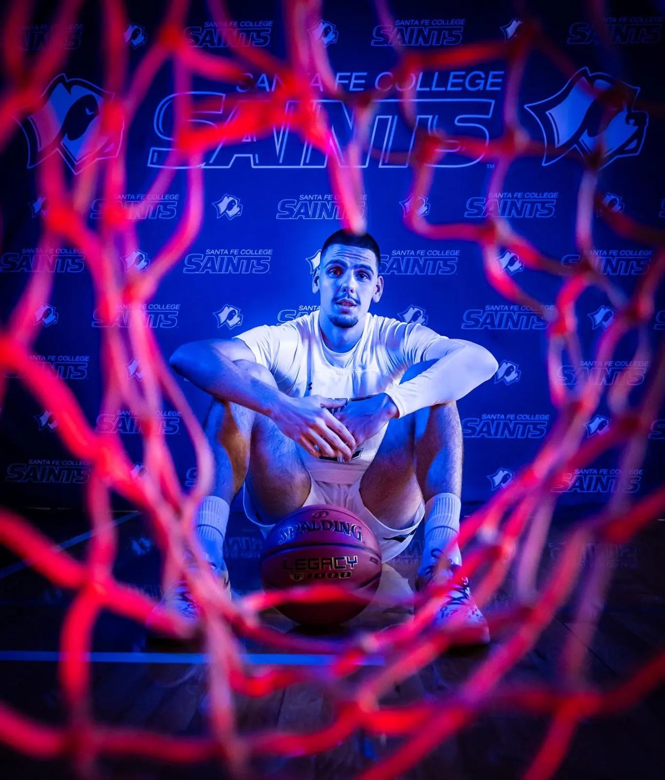 Santa Fe College Saints Men’s Basketball player Predrag Panisic poses for a photo during Media Day on Sept. 19, 2024 in Gainesville, Fla.