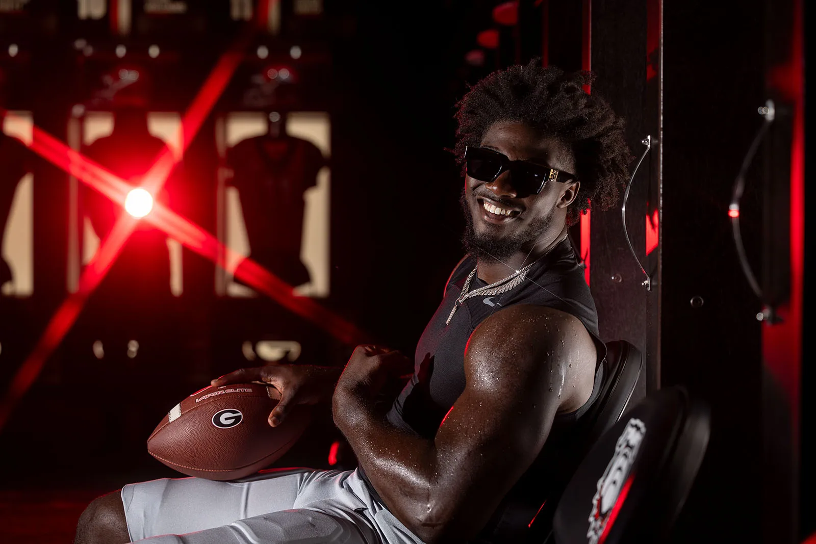 A portrait inside the Georgia locker room of inside linebacker Jalon Walker for the 2024 Game Changers fall season marketing campaign.