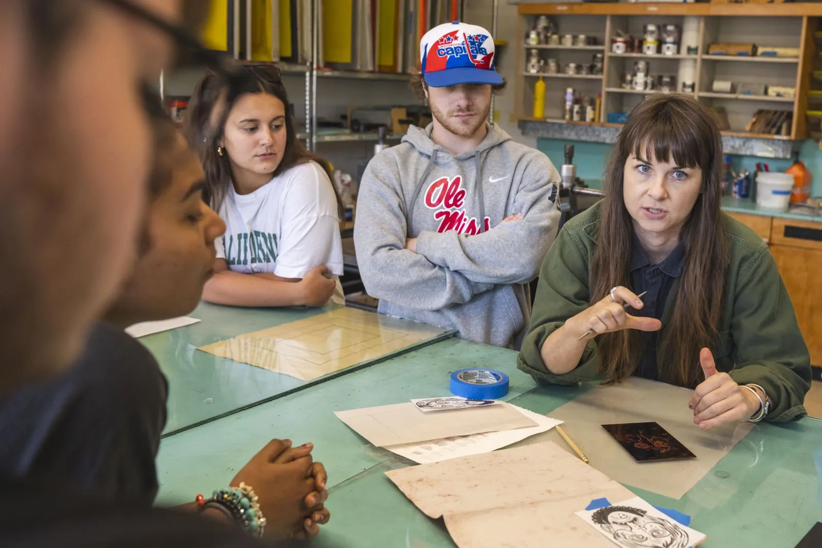 Kaleena Stasiak, Assistant Professor of Art, in the printmaking studio, Meek Hall Room 124.