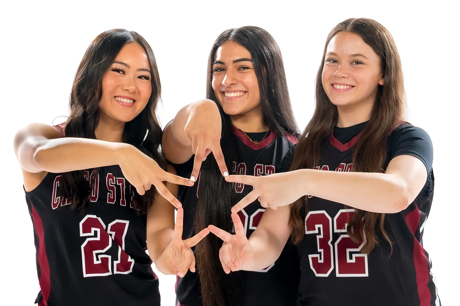 Wildcats’ #21 Kaila Woo, #23 Nseije Ortiz, and #32 Campbell Vieg (left to right) pose for Women's Basketball (WBB) media day on Tuesday, September 16, 2025.