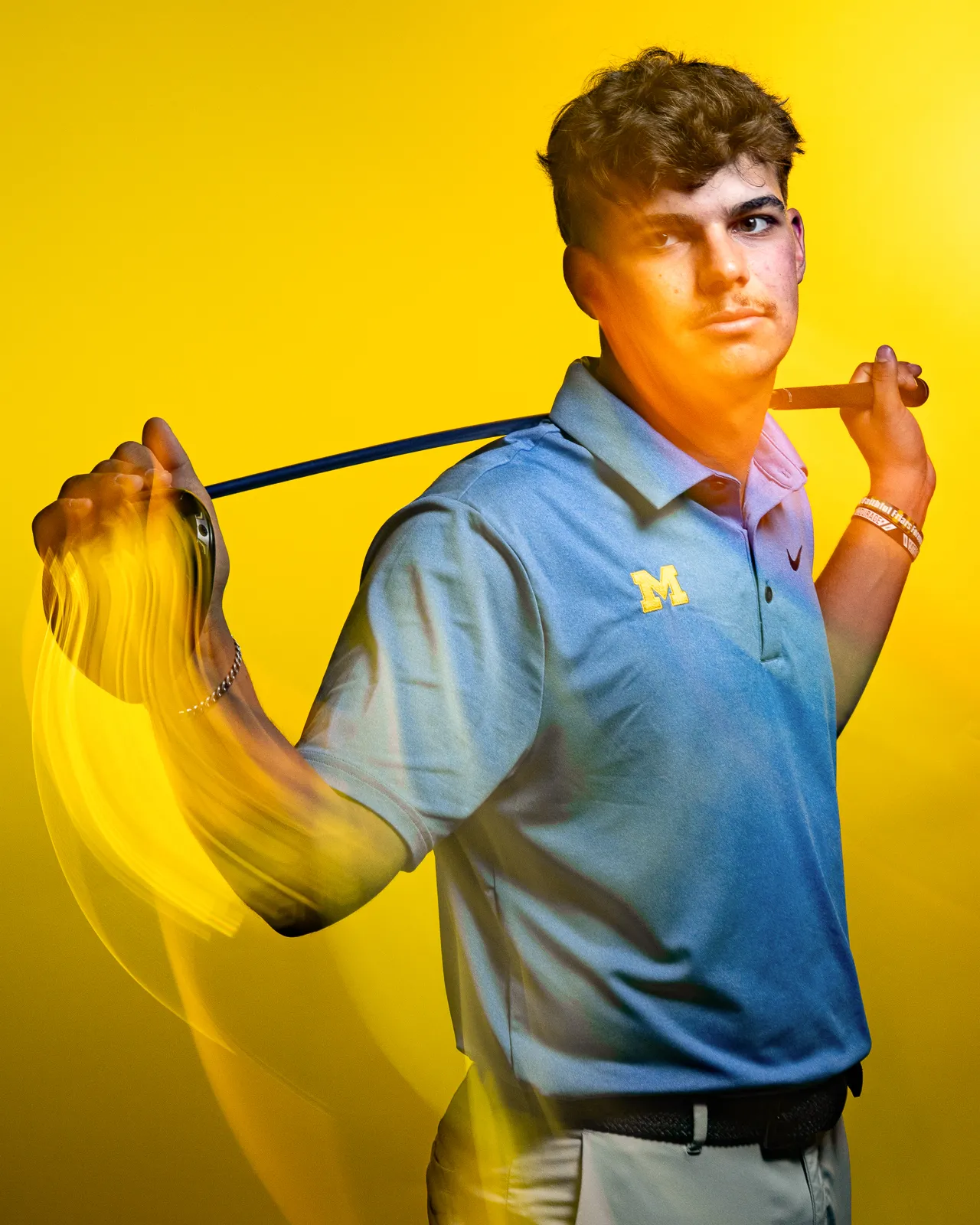University of Michigan mens golf Dean Muratore poses during the 2025-26 marketing photo session.