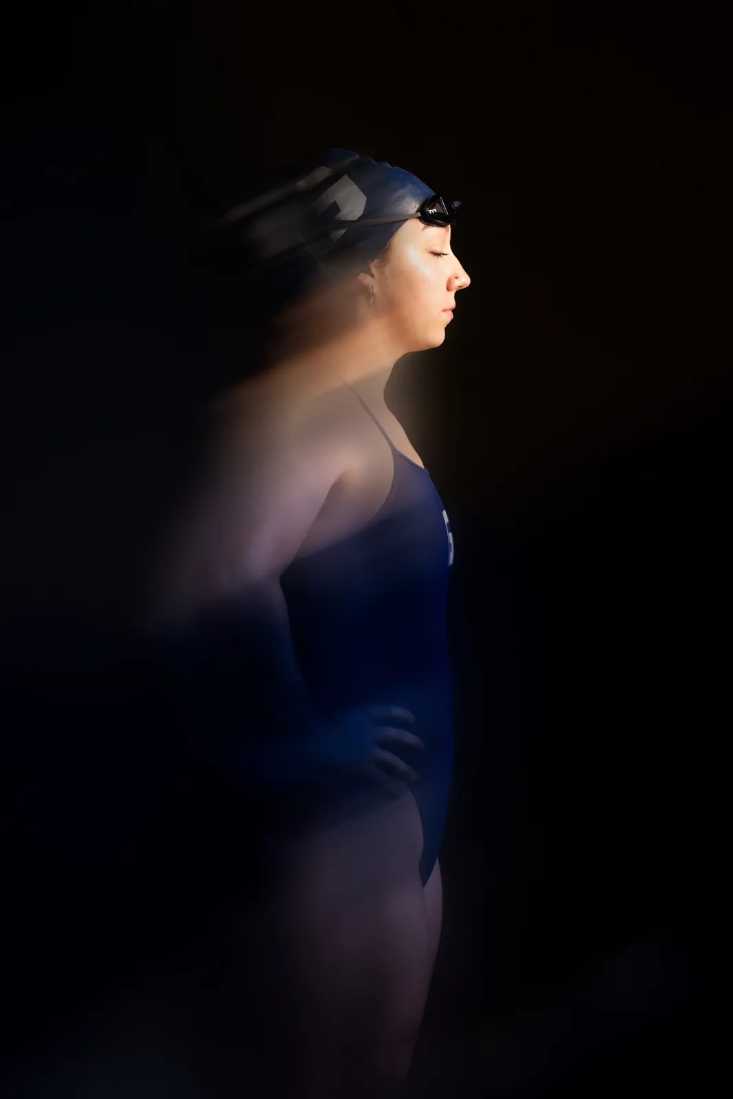 Women's Swim media day. Blur effect done in post processing, manually, not AI.