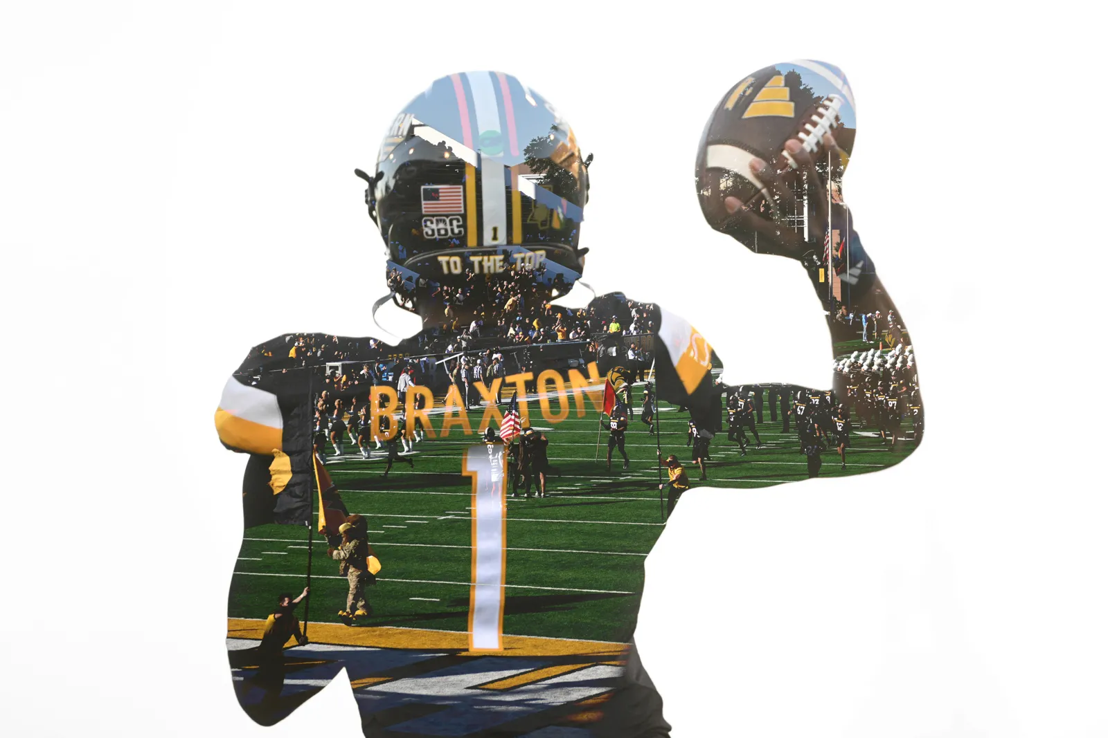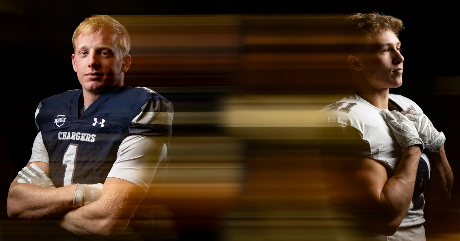 Two of our football players being highlighted for an upcoming magazine article. Made up of a composite of two photographs.