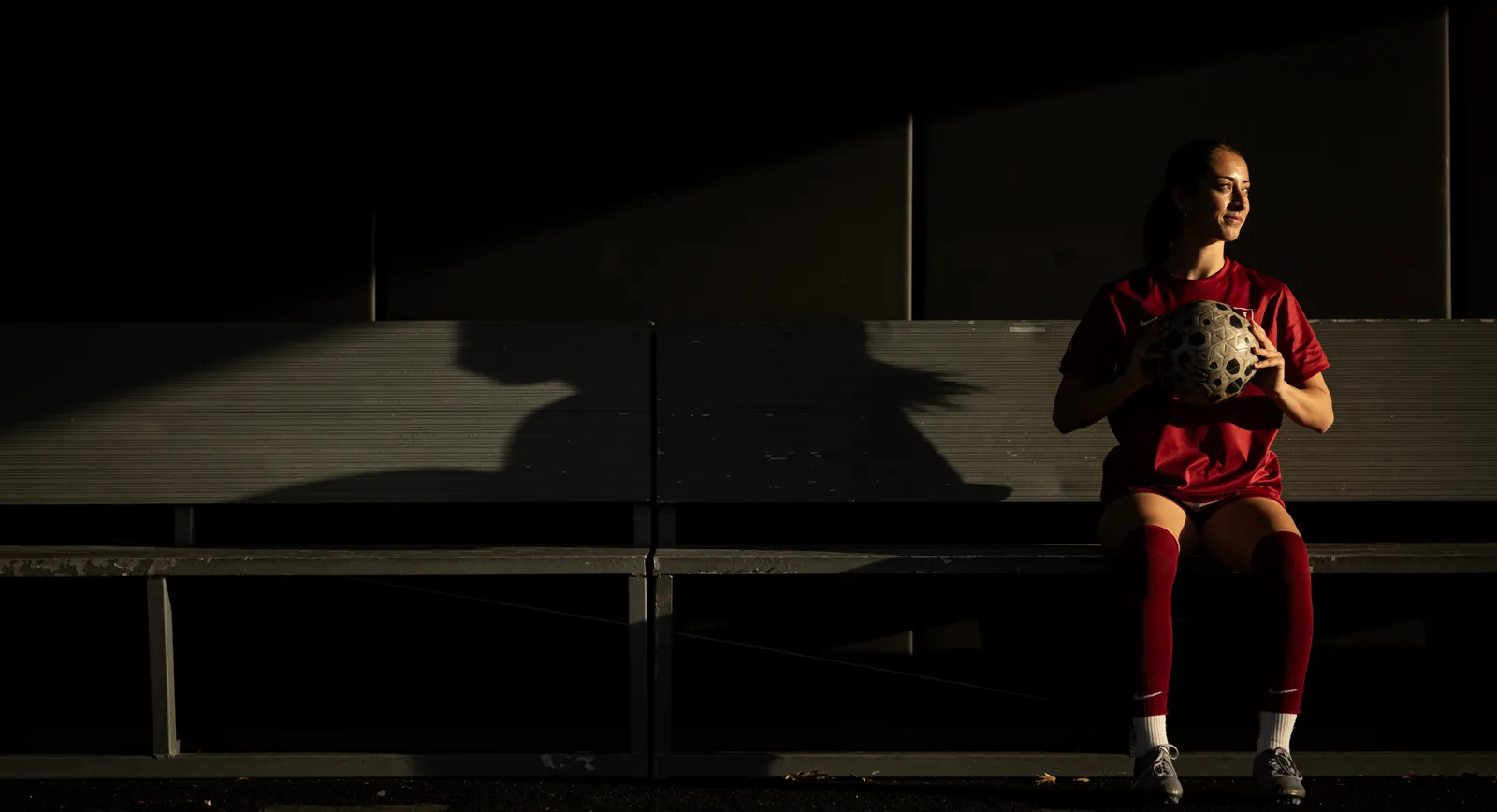 November 1, 2025, Boston, MA: Vanessa Frelih #12 of Harvard Women’s Soccer poses for a portrait on the team bench at Harvard University, in Boston Massachusetts, Saturday, November 1, 2025.