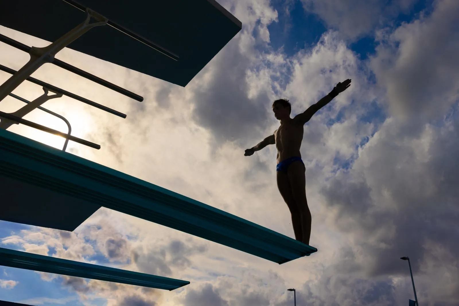 Former All-Star diver Zach Cooper practices his springboard dive during training for the 2024 Summer Olympics at the Whitten University Center Swimming Pool