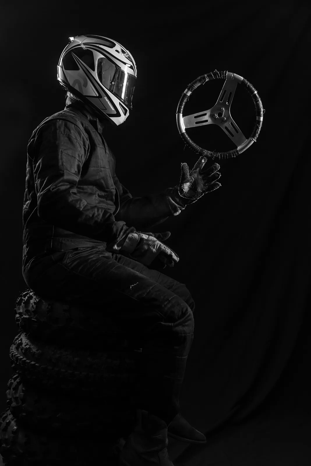 A member of the Eagle Motorsports Club holds a pose for a promo shoot.