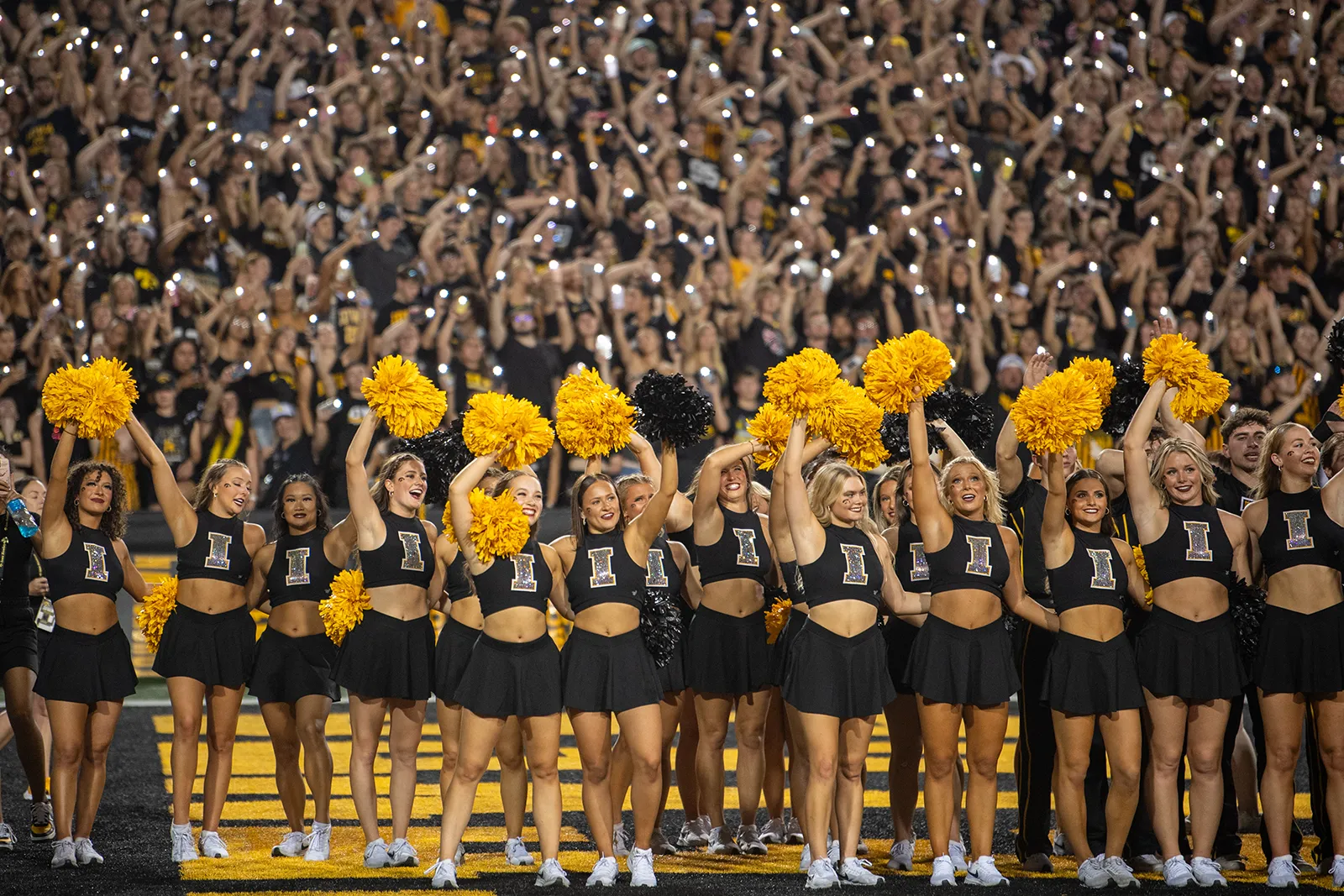 Iowa Dance Team members and the crowd wave to the Children's Hospital as part of the gametime tradition.