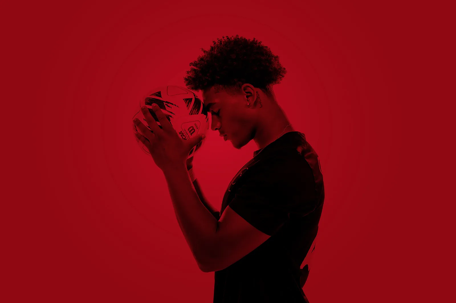 Wildcat’s #20 Skeebo Henry holds a soccer ball to his forehead to pose for Men's Soccer (MSOC) media day on Friday, August 22, 2025.