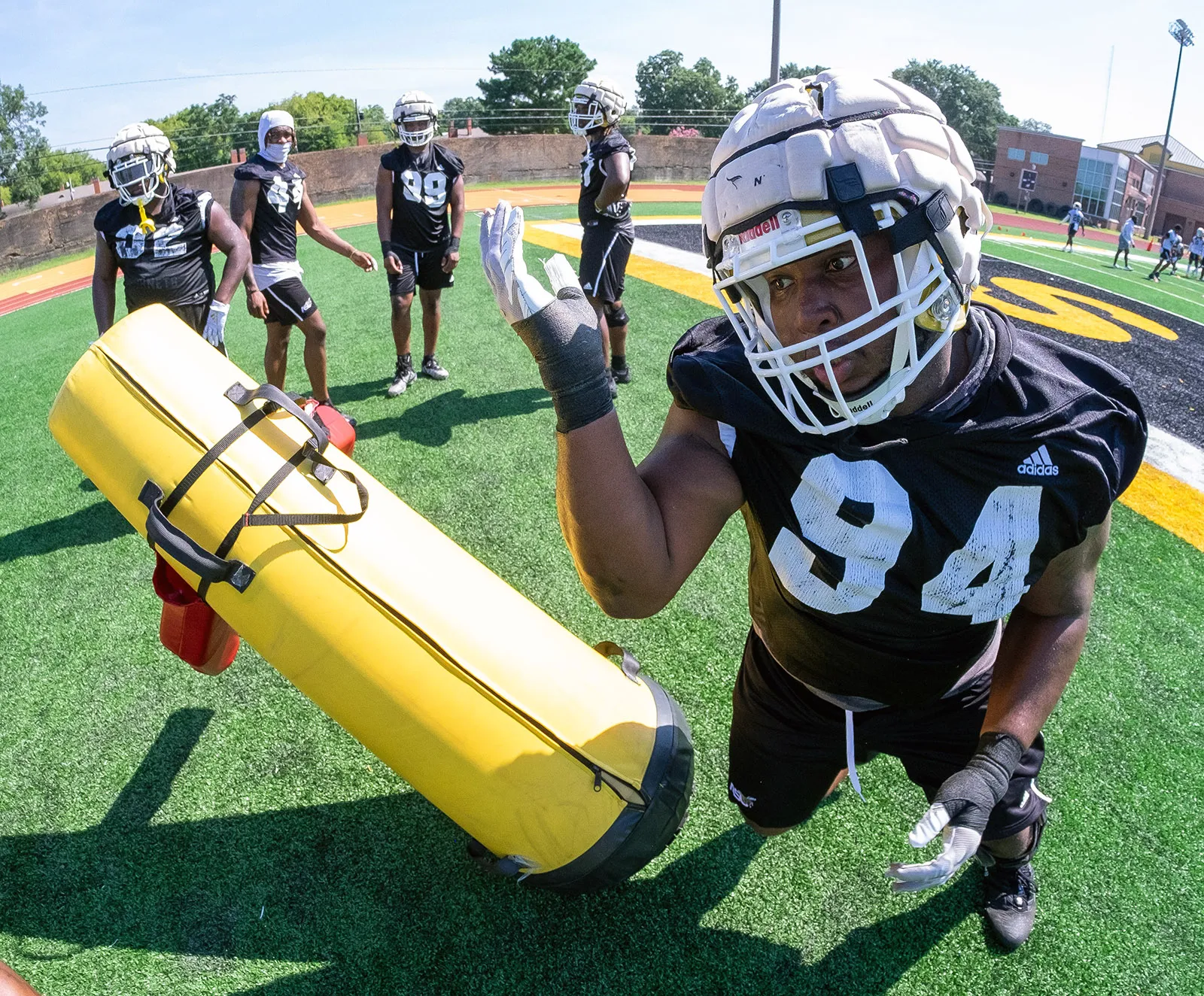 Shooting football practice with a fisheye lens because it's fun to get close
