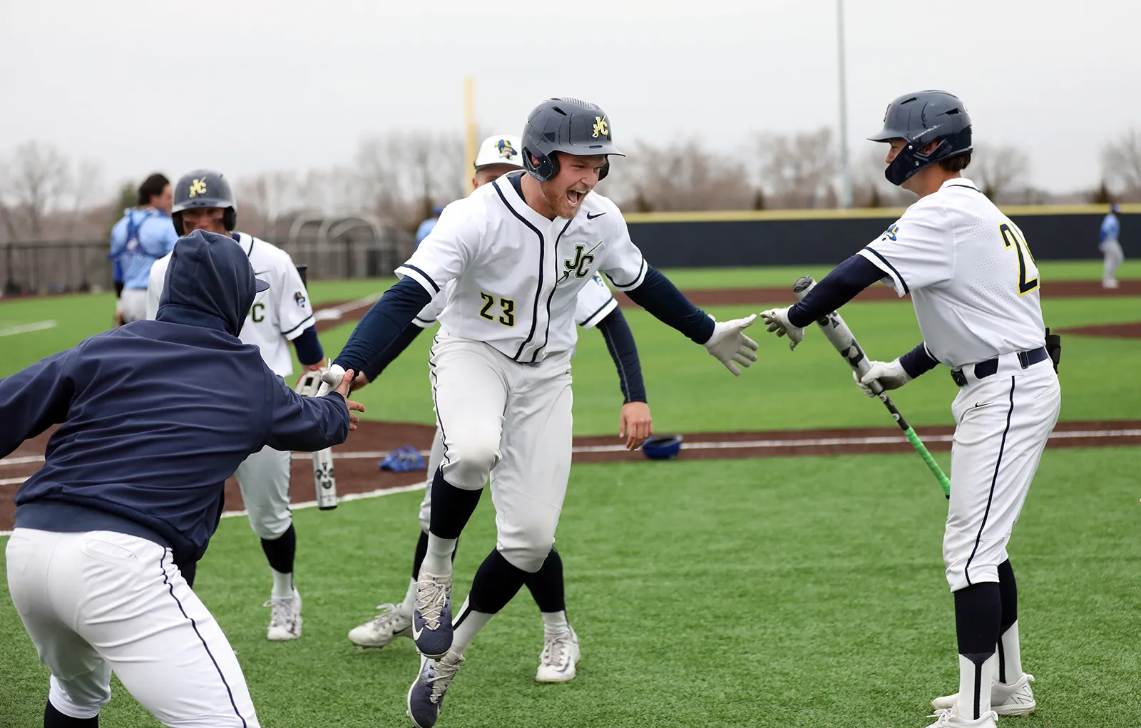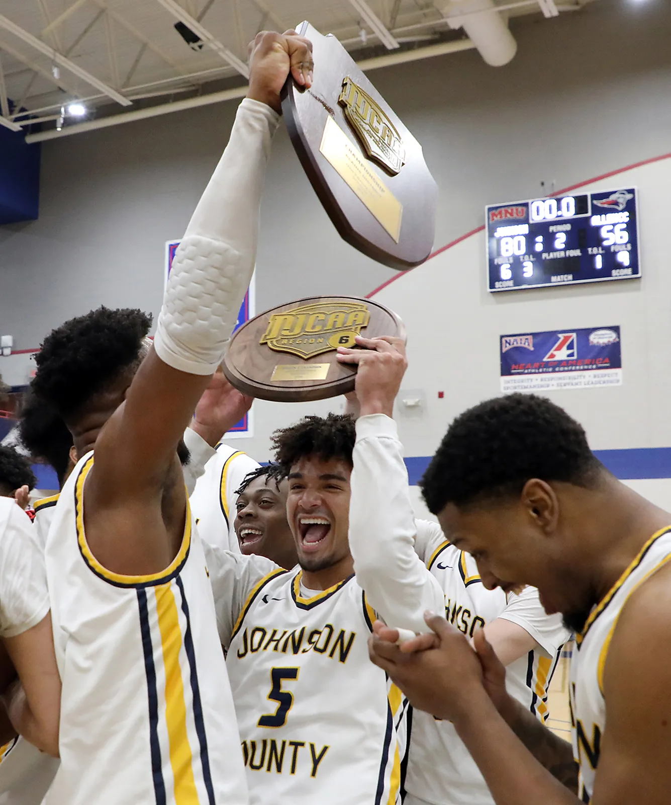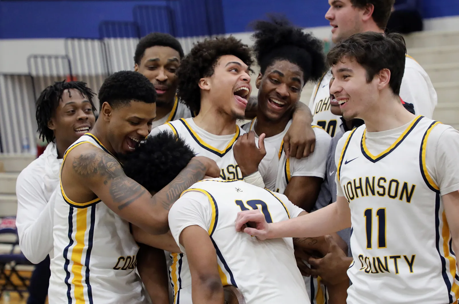 Men's team enjoys their victory after winning the regional division.