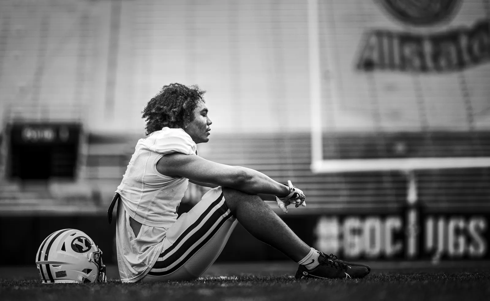 Wide Receiver Keanu Hill taking a moment during spring practice.