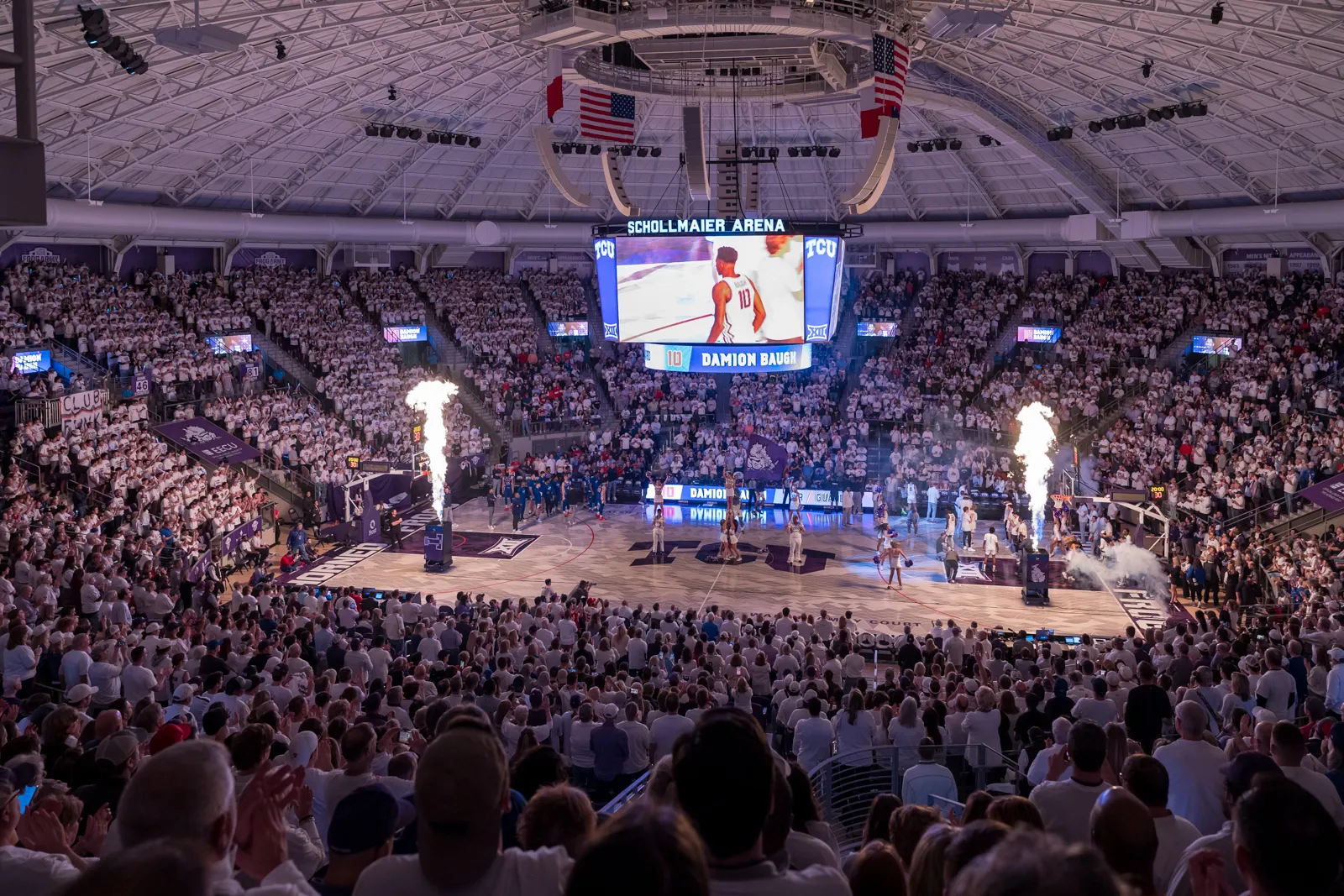 TCU Men's basketball introductions as they prepare to face off against Kansas in Schollmaier Arena.