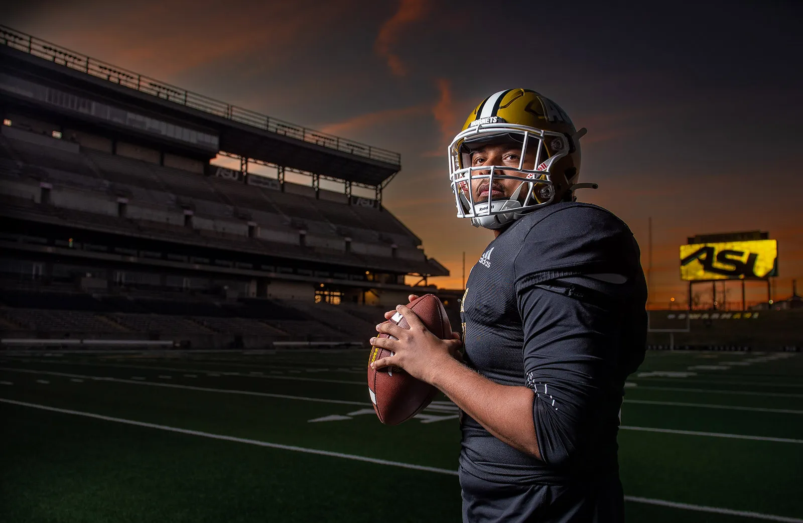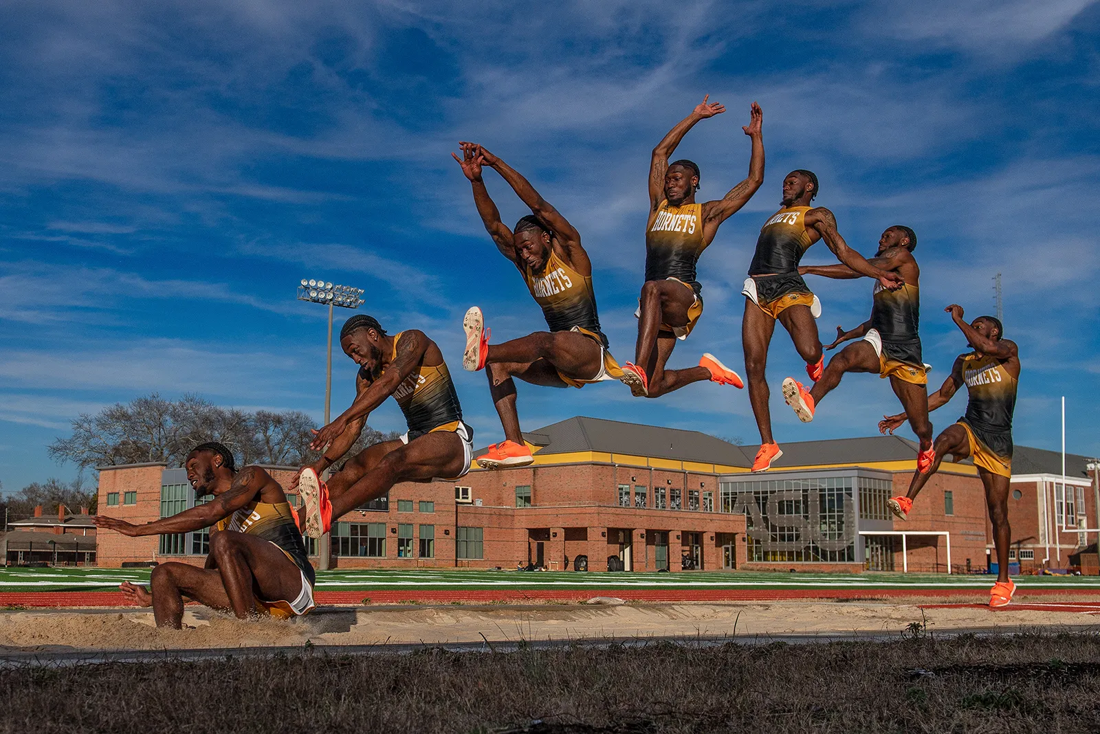 Any photos taken for marketing/promotional purposes (including sports portraits). Studio photos, on location, etc. Photo retouching/editing is permitted. Any composite, generative fill, or AI work done in post must be noted in the caption.