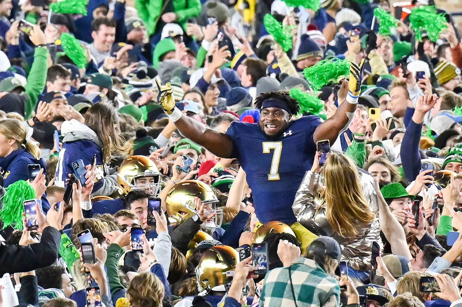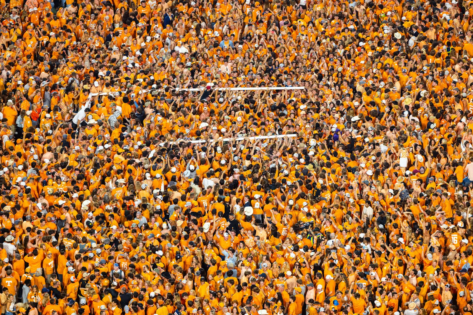 A goal post makes it way out of the stadium and to the river after a historic win.